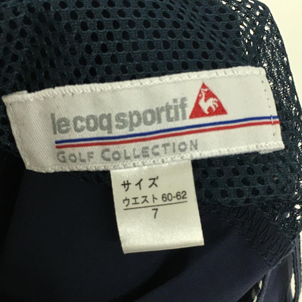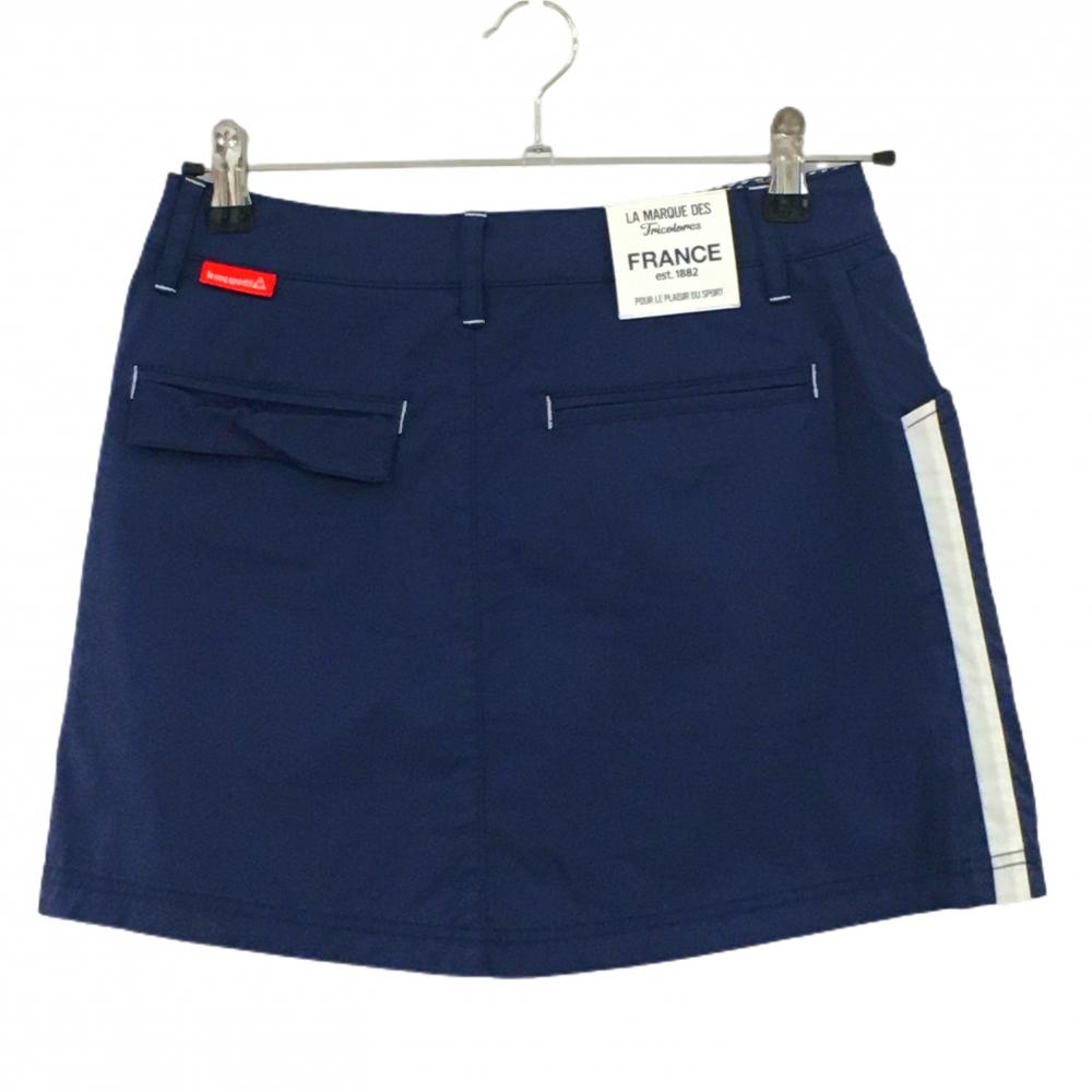 【美品】ルコック スカート ネイビー×白 サイド2ライン ロゴ刺しゅう 内側インナーパンツ レディース 7 ゴルフウェア le coq sportif