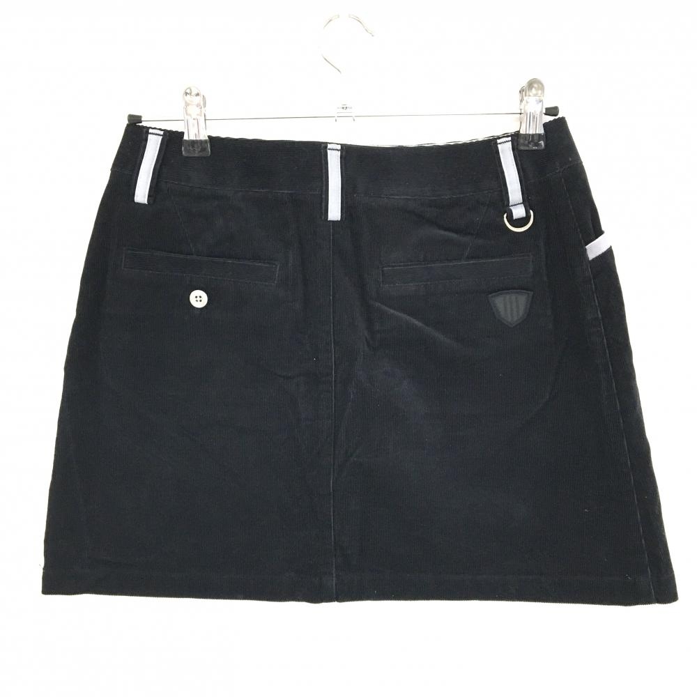 【美品】アディダス コーデュロイスカート 黒×ライトグレー ロゴ刺しゅう レディース L/G ゴルフウェア adidas