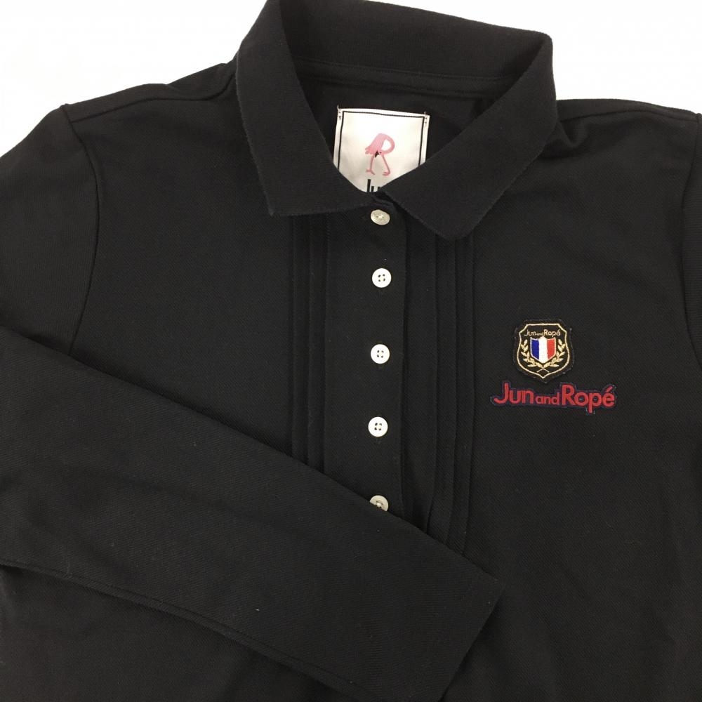 ジュンアンドロペ 長袖ポロシャツ 黒 織生地 胸元ロゴ レディース S ゴルフウェア JUN&ROPE