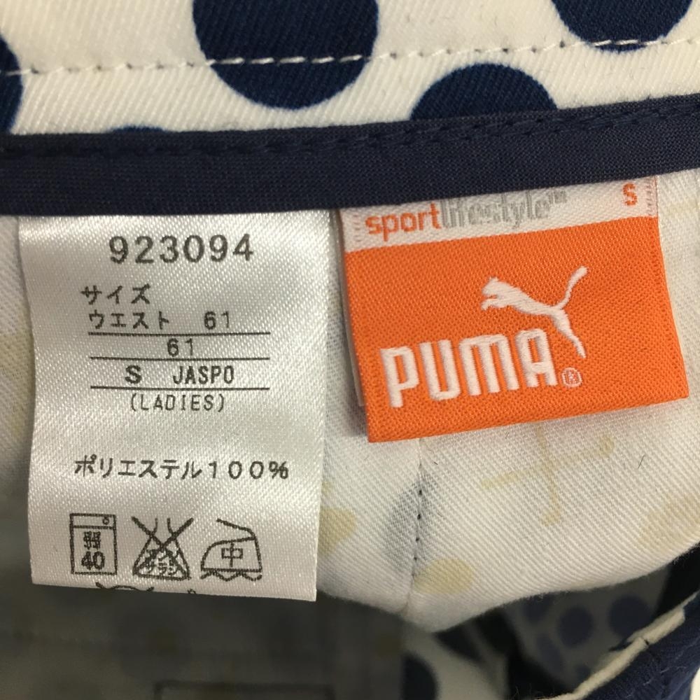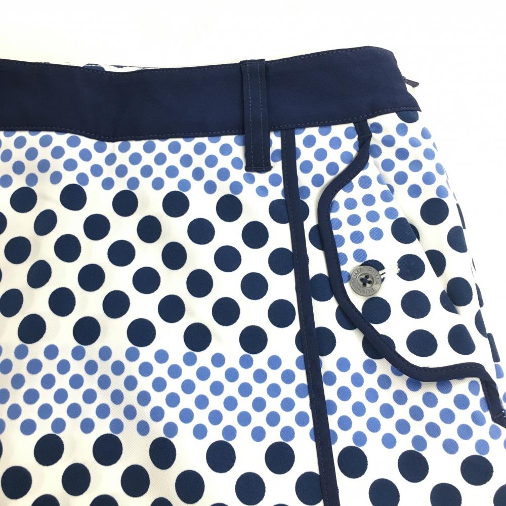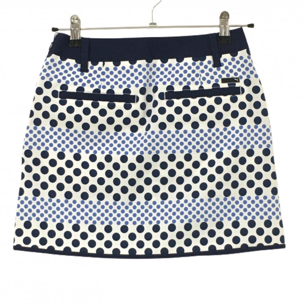 【超美品】プーマ スカート 白×ネイビー 総柄 ドット ロゴ刺しゅう レディース S ゴルフウェア PUMA
