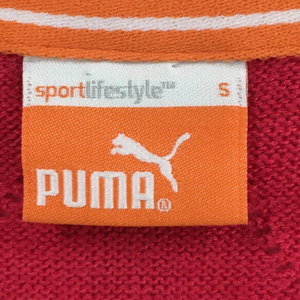 プーマ ニットベスト レッドピンク×白 ダイヤ柄 Vネック 胸元ロゴ レディース S ゴルフウェア PUMA