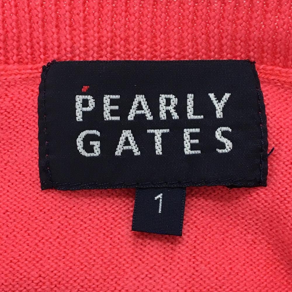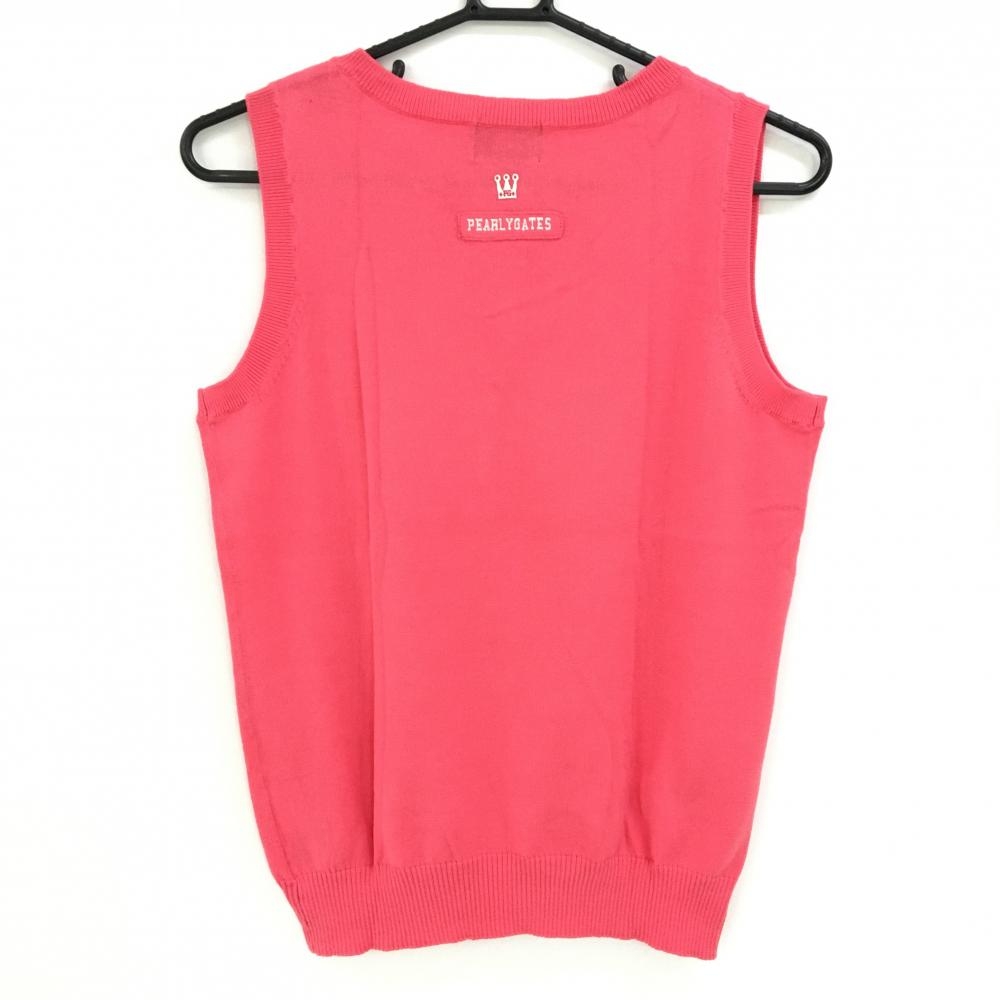 【美品】パーリーゲイツ ニットベスト ピンク Vネック コットン100% レディース 1(M) ゴルフウェア PEARLY GATES