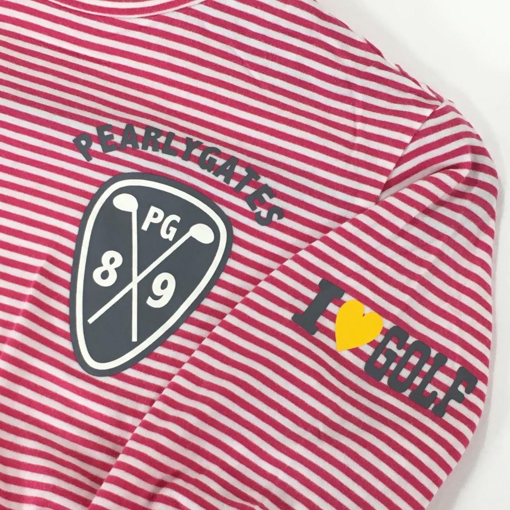 パーリーゲイツ 長袖ハイネックシャツ ピンク×白 ボーダー コットン混 レディース 0(S) ゴルフウェア PEARLY GATES