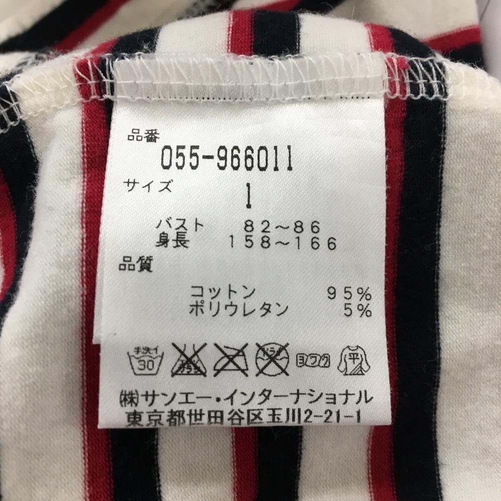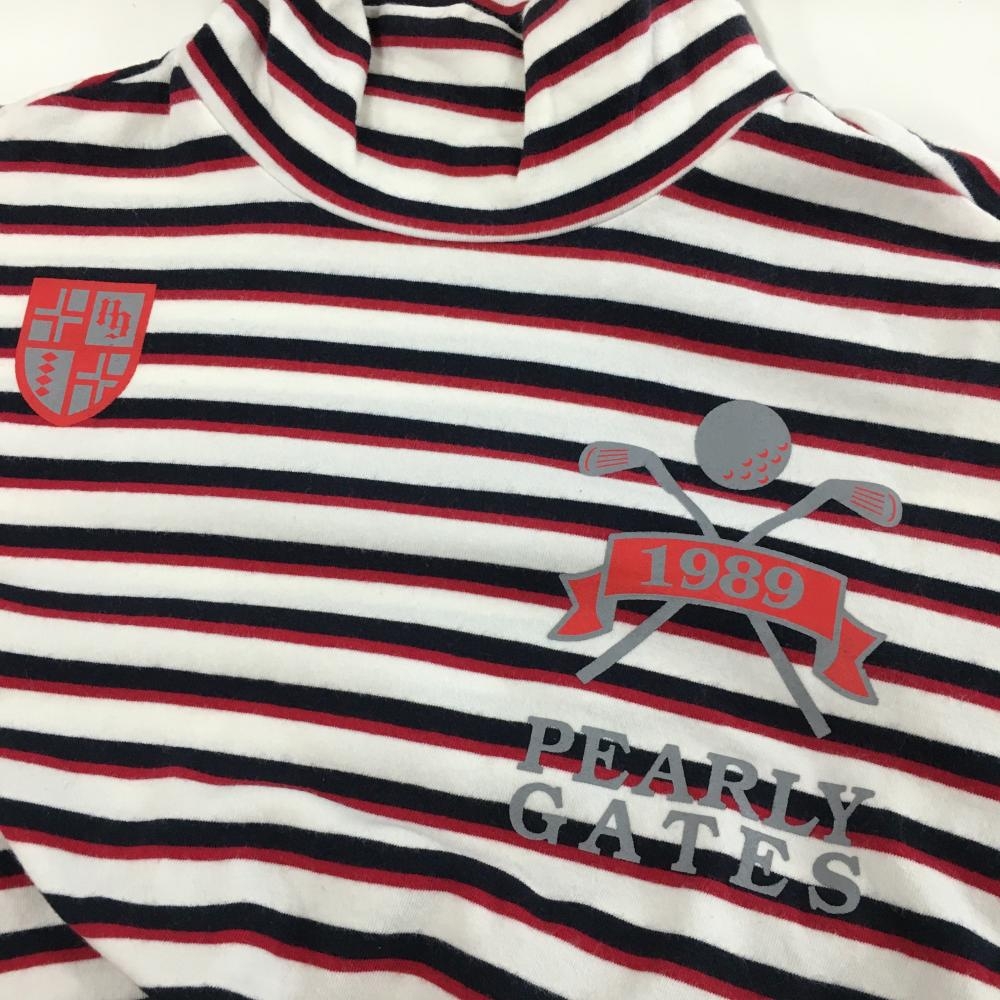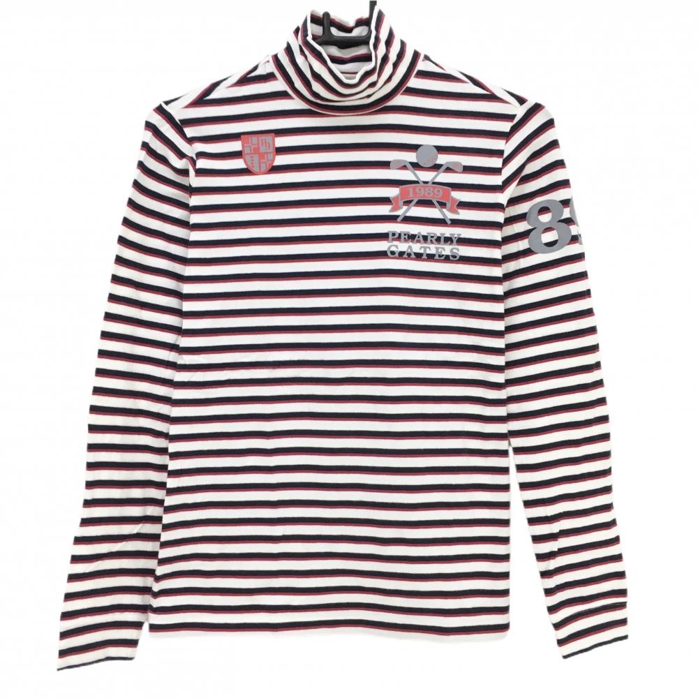 パーリーゲイツ 長袖ハイネックシャツ 白×レッド ボーダー コットン混 レディース 1(M) ゴルフウェア PEARLY GATES