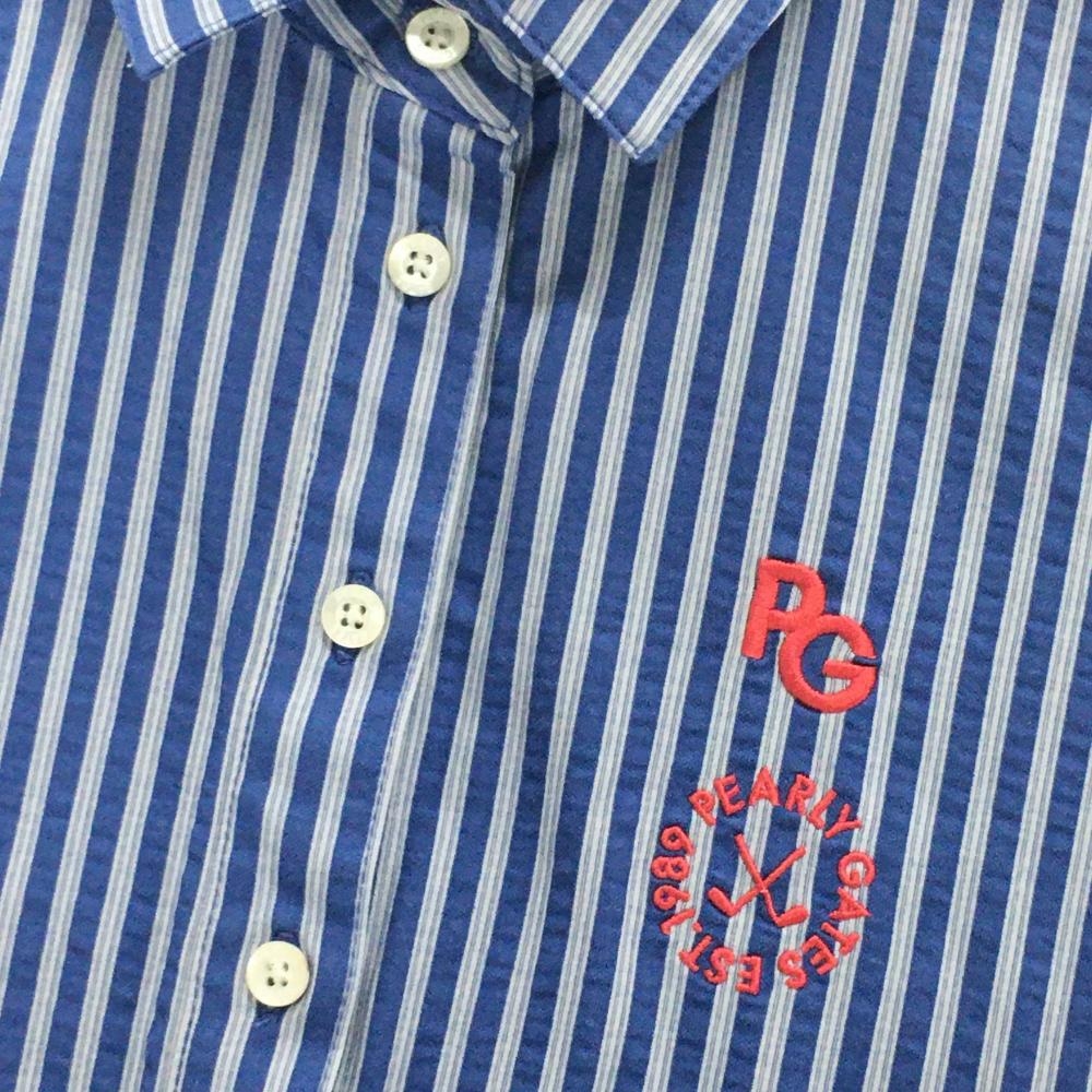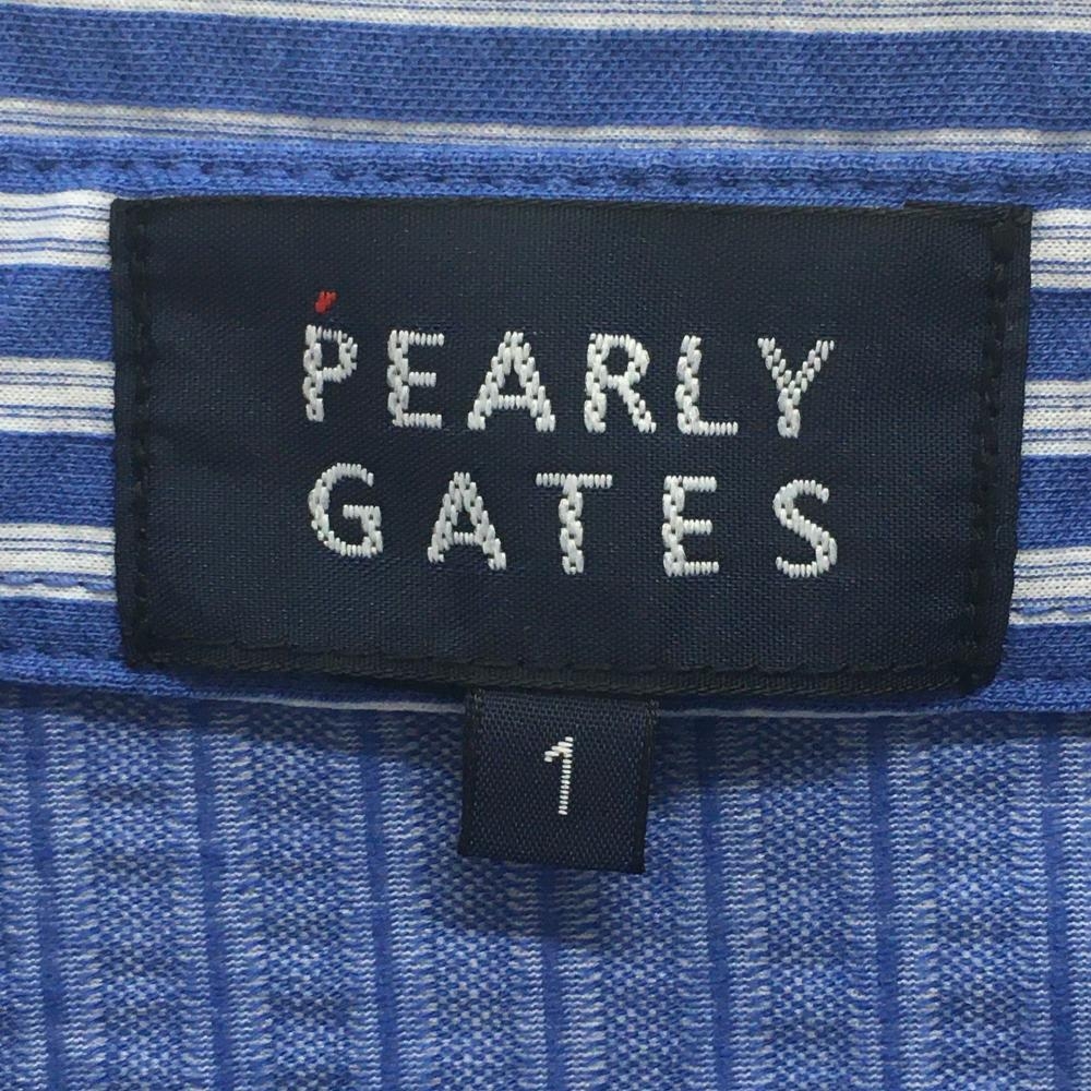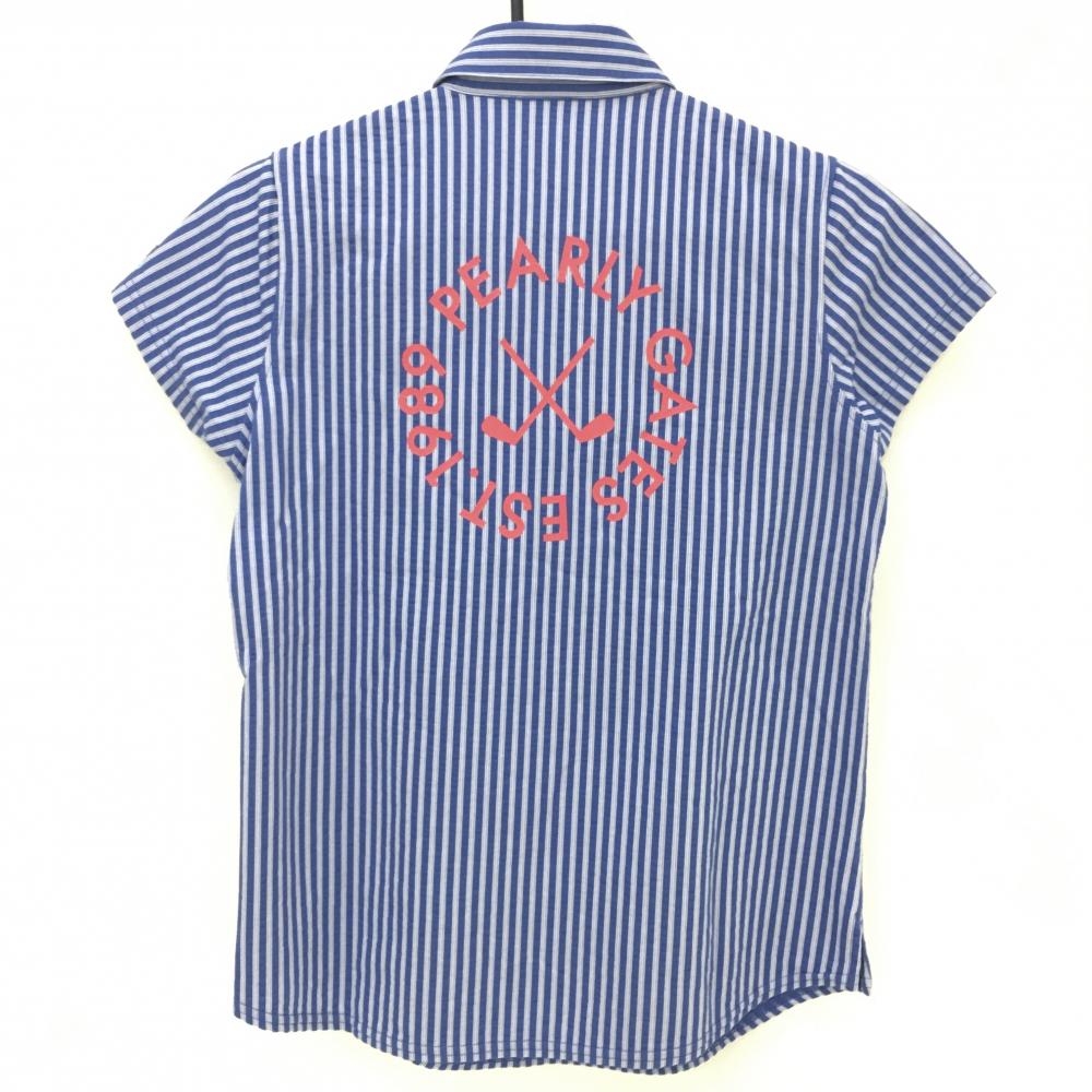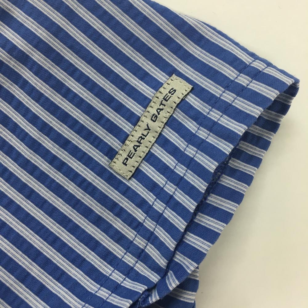 【超美品】パーリーゲイツ 半袖ポロシャツ ブルー×白 ストライプ サッカー生地 レディース 1(M) ゴルフウェア 2023年モデル PEARLY GATES