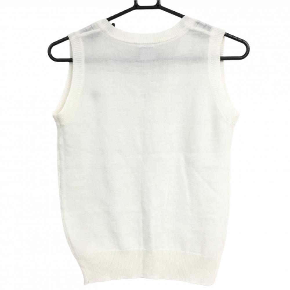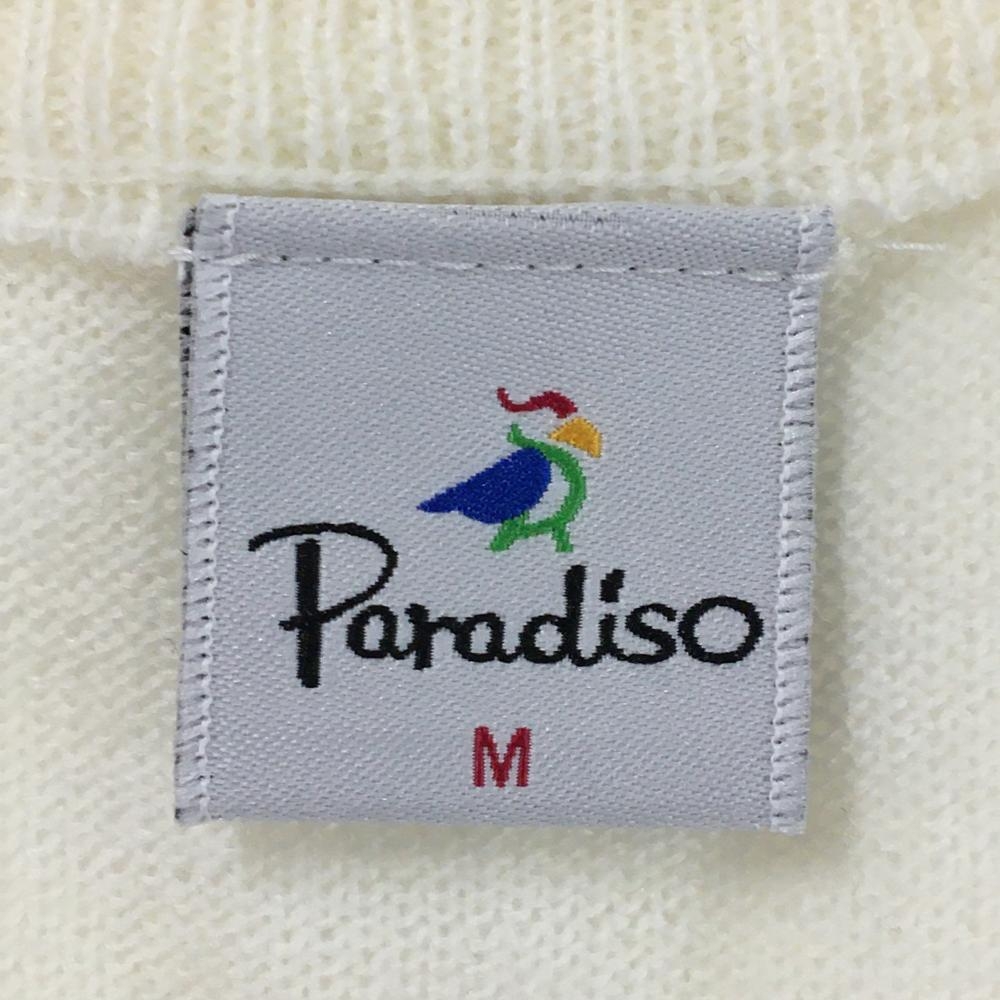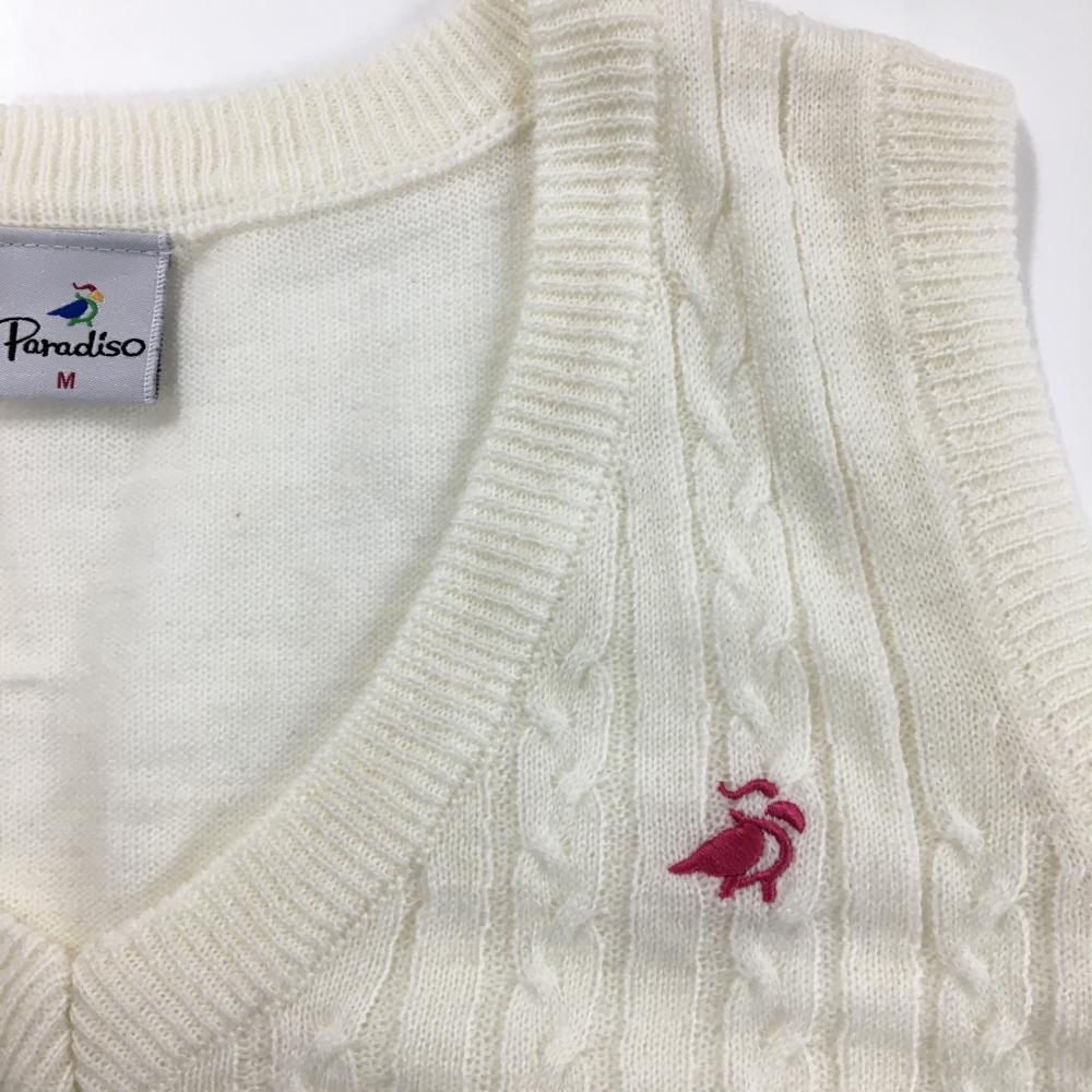 【超美品】パラディーゾ ニットベスト 白 ロゴピンク Vネック レディース M ゴルフウェア Paradiso