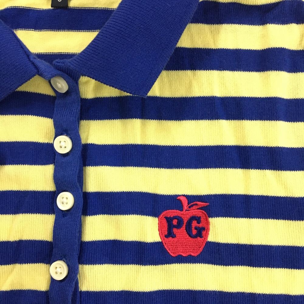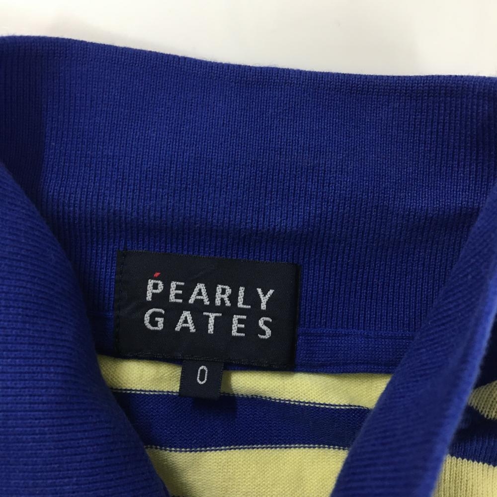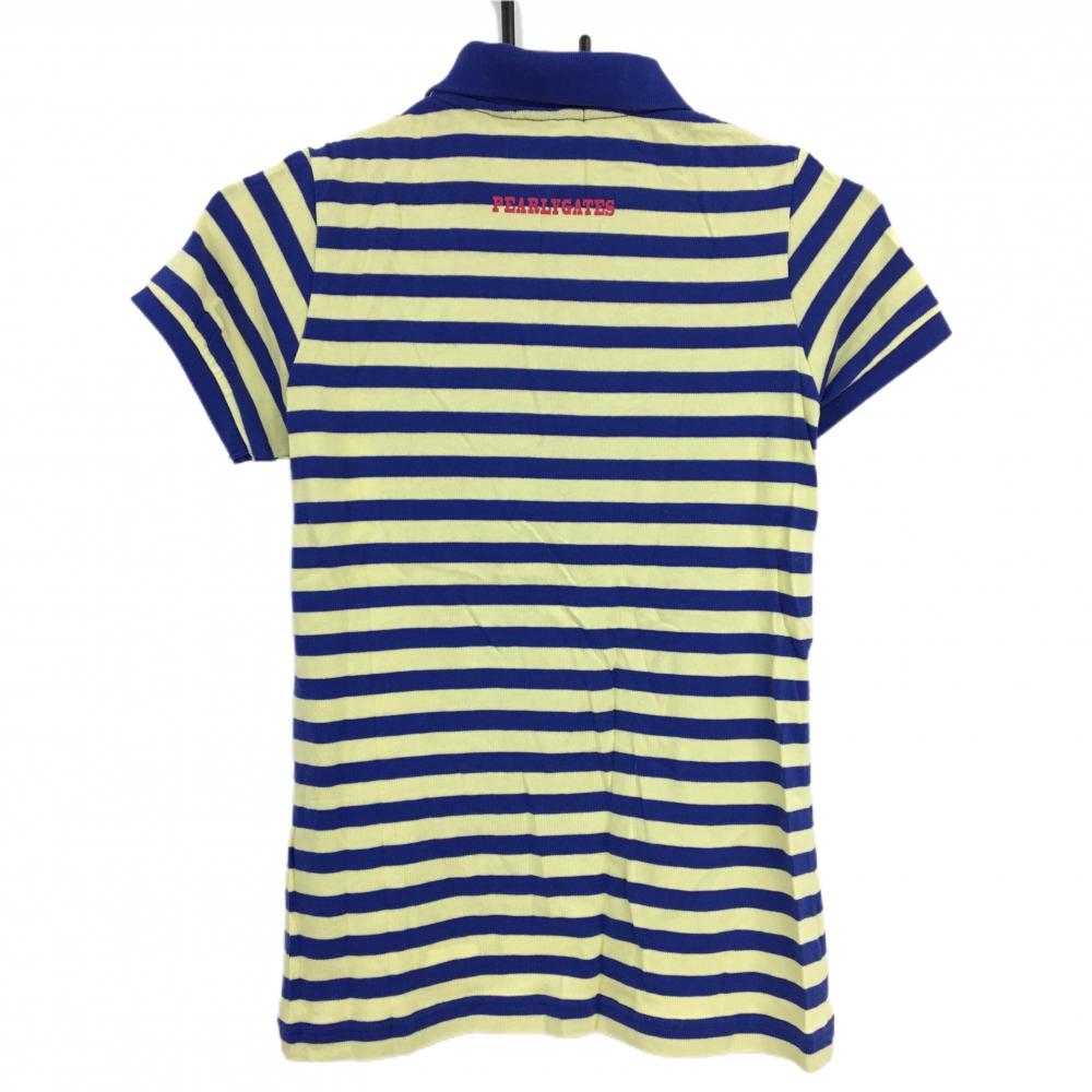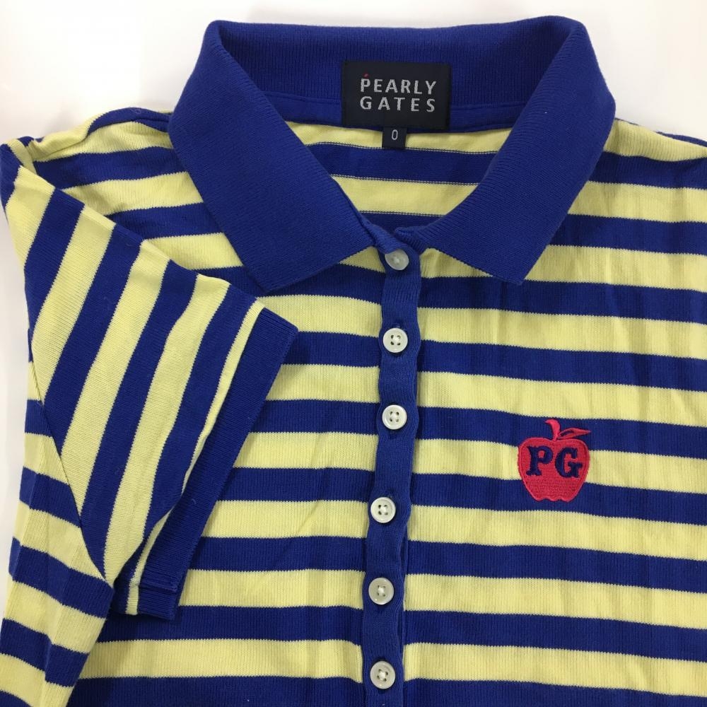 パーリーゲイツ ニット半袖ポロシャツ ブルー×イエロー ボーダー レディース 0(S) ゴルフウェア PEARLY GATES