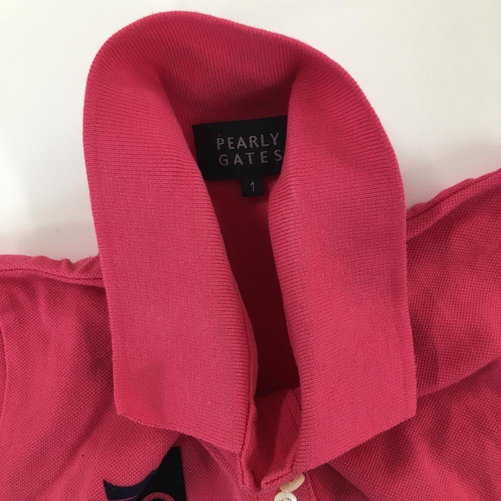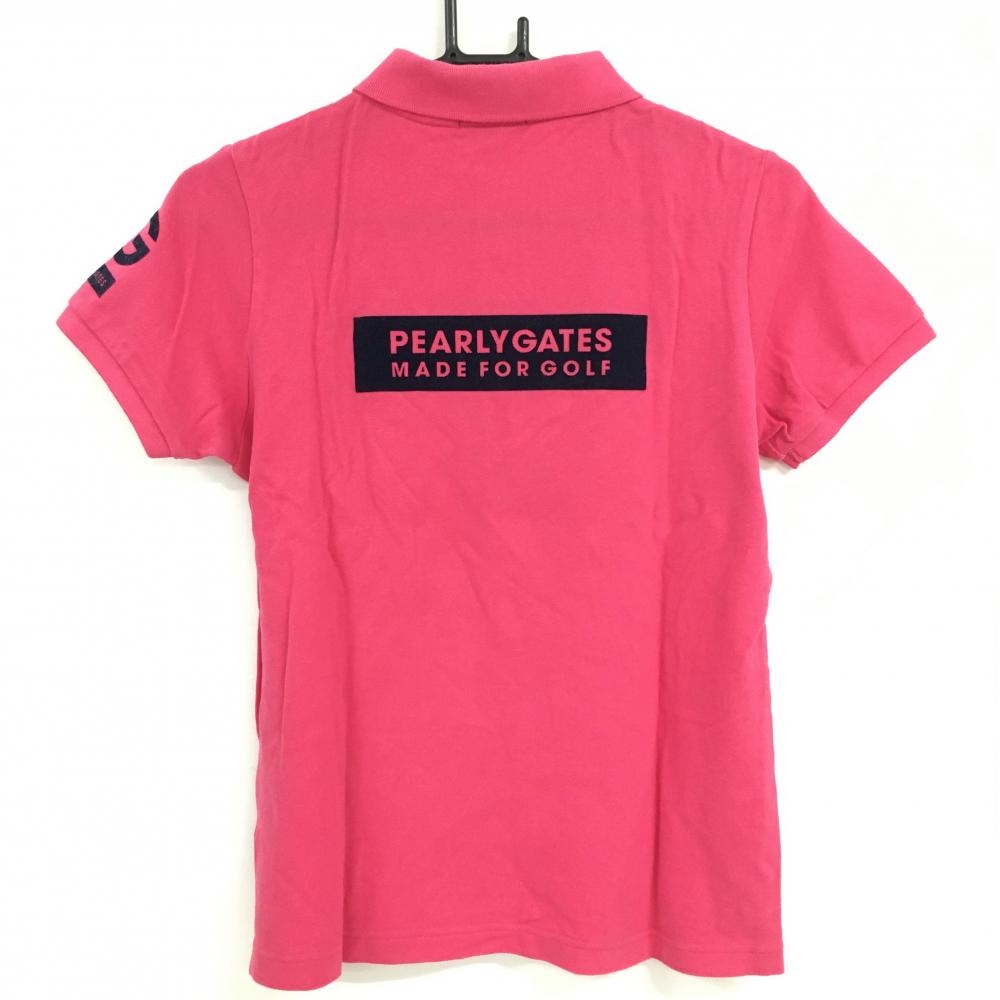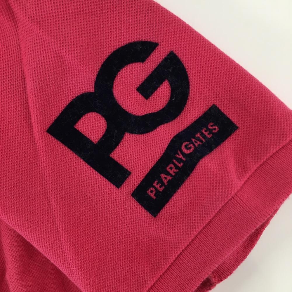 パーリーゲイツ 半袖ポロシャツ レッド×ネイビー フロッキーロゴ レディース 1(M) ゴルフウェア PEARLY GATES