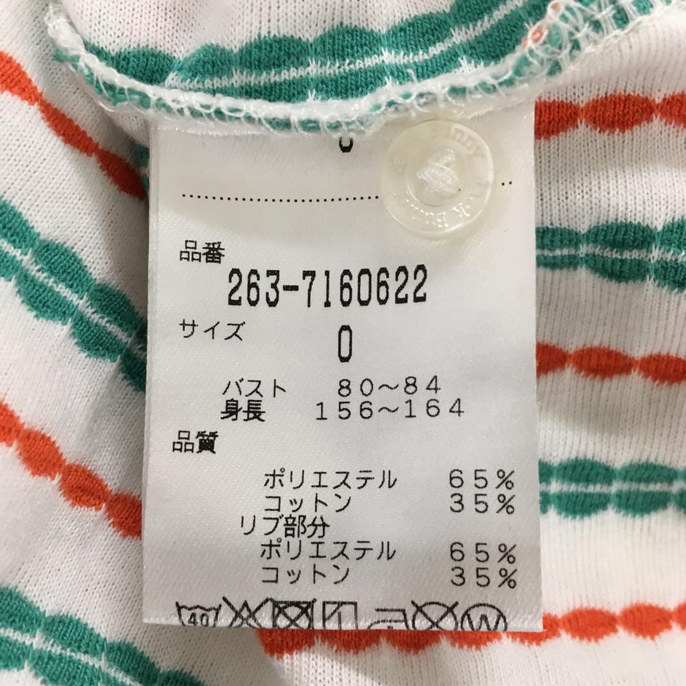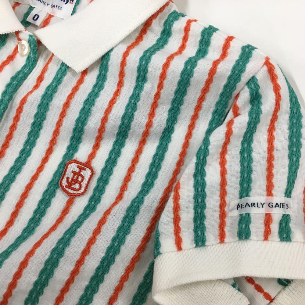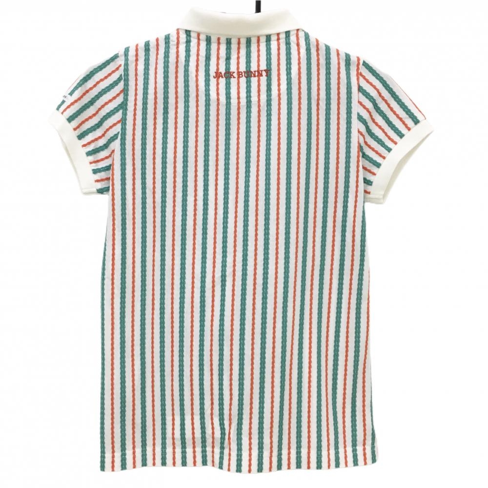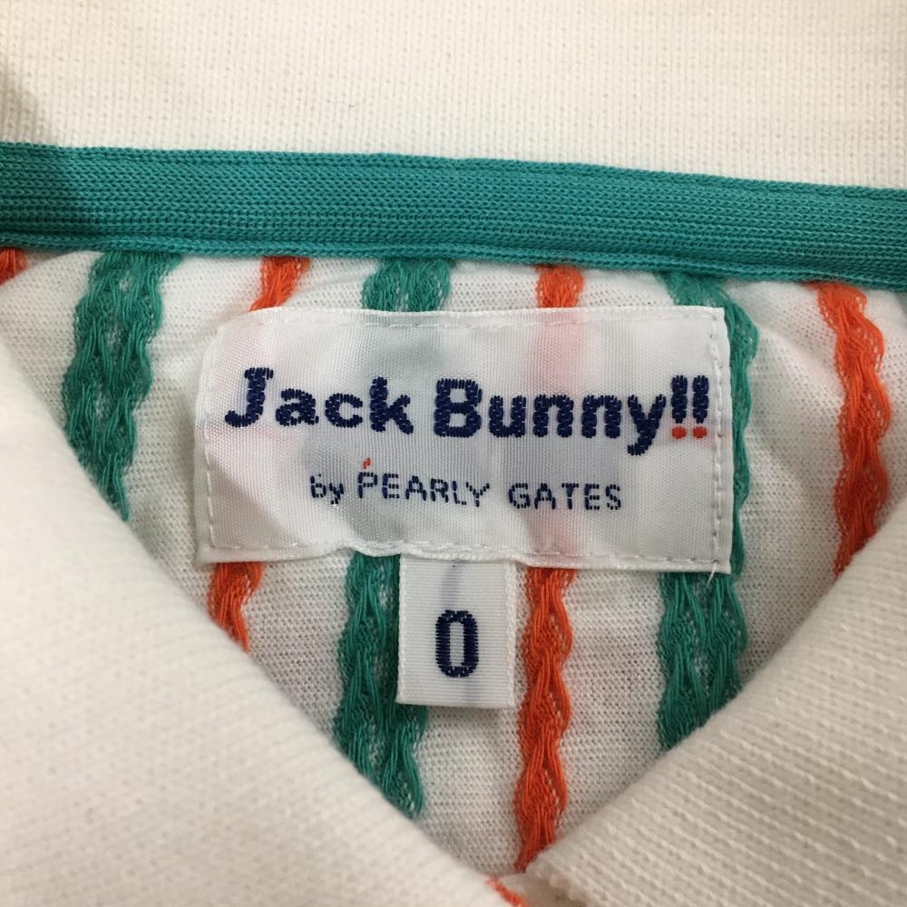 【超美品】ジャックバニー 半袖ポロシャツ 白×グリーン ストライプ織生地 ロゴワッペン レディース 0(S) ゴルフウェア Jack Bunny