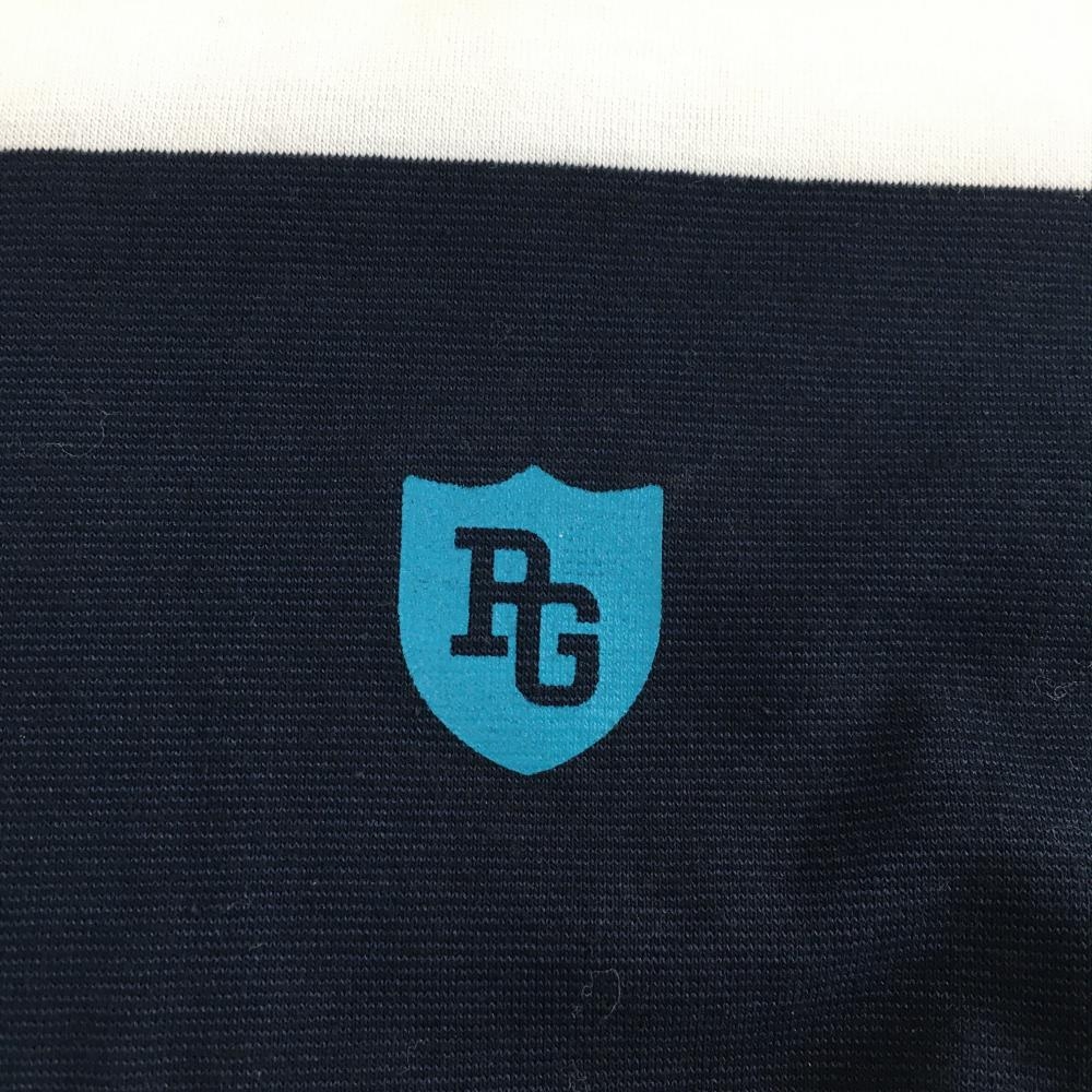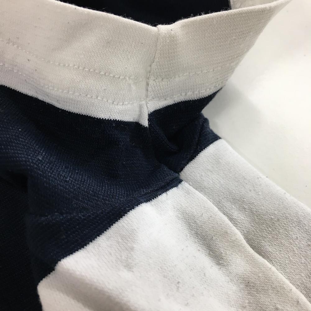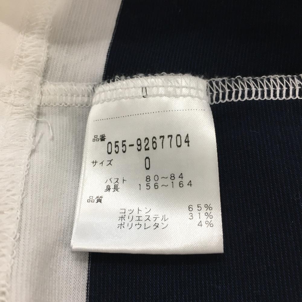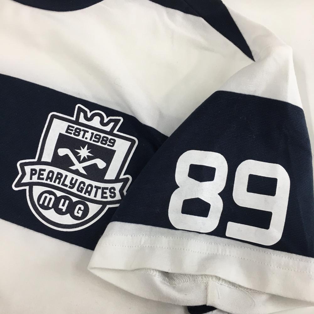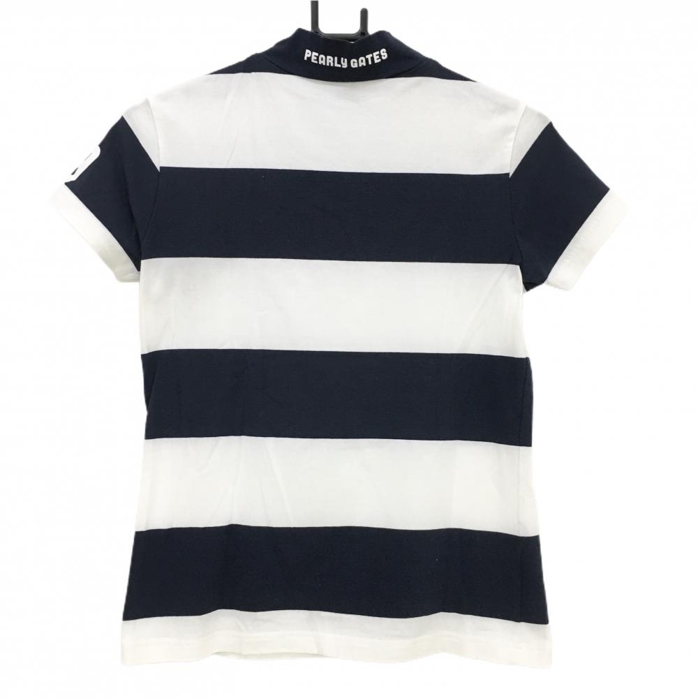 【美品】パーリーゲイツ 半袖ハイネックシャツ 白×ネイビー 太ボーダー コットン混 レディース 0(S) ゴルフウェア PEARLY GATES