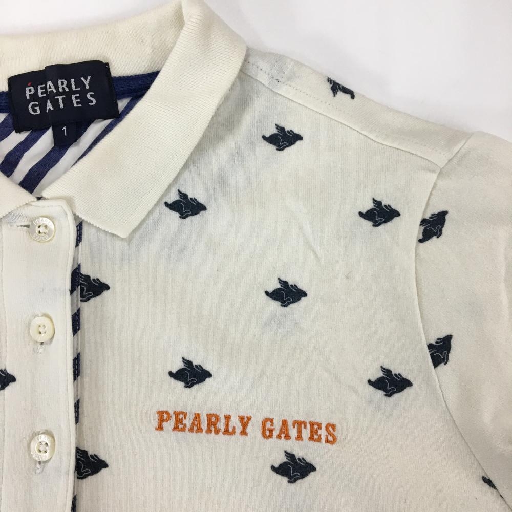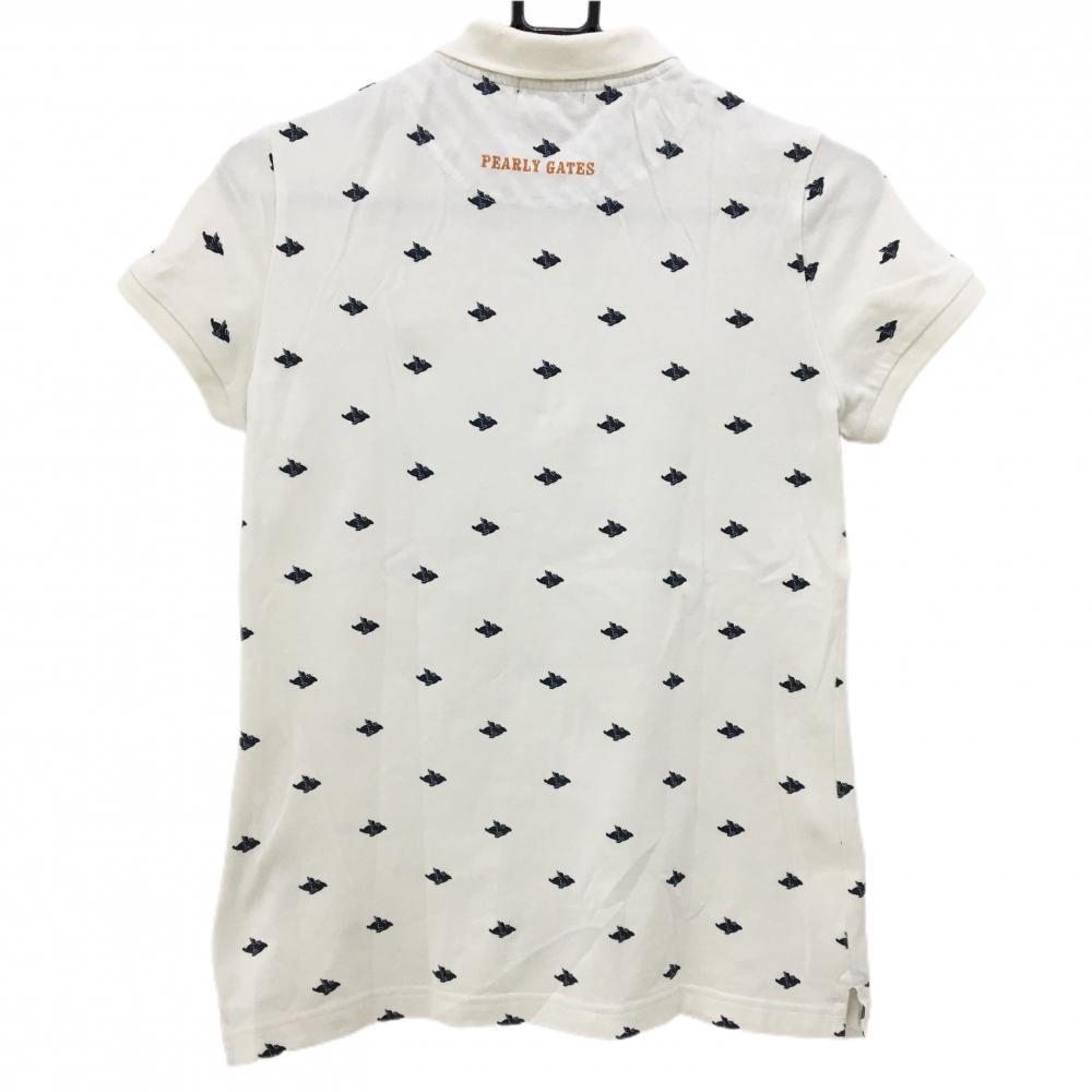 パーリーゲイツ 長袖ポロシャツ アイボリー×ネイビー 総柄 レディース 1(M) ゴルフウェア PEARLY GATES