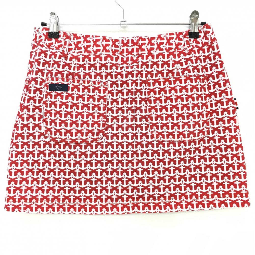【超美品】キャロウェイ スカート レッド×白 イカリ柄 内側インナーパンツ レディース M ゴルフウェア Callaway