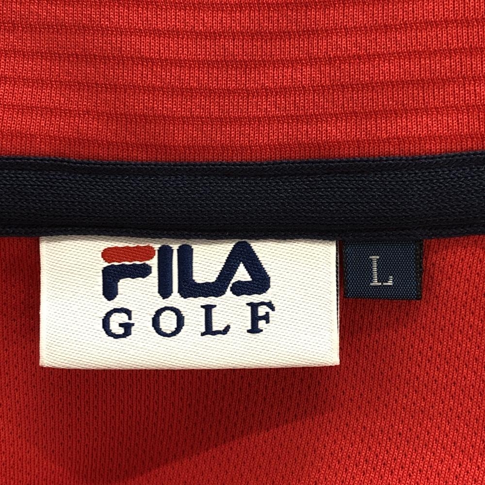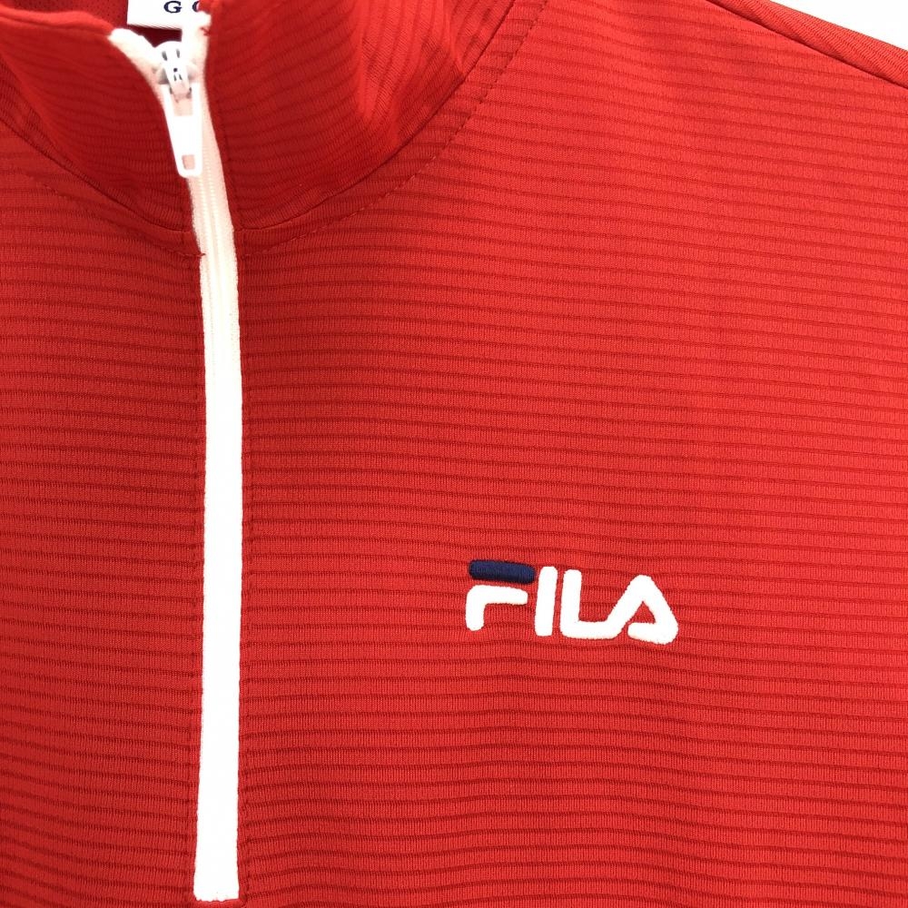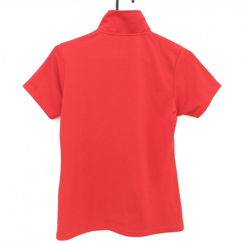 【超美品】フィラゴルフ 半袖ハイネックシャツ レッド ボーダー ハーフジップ 胸元ロゴ レディース L ゴルフウェア FILA GOLF
