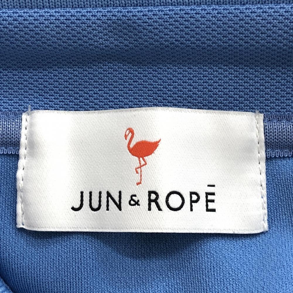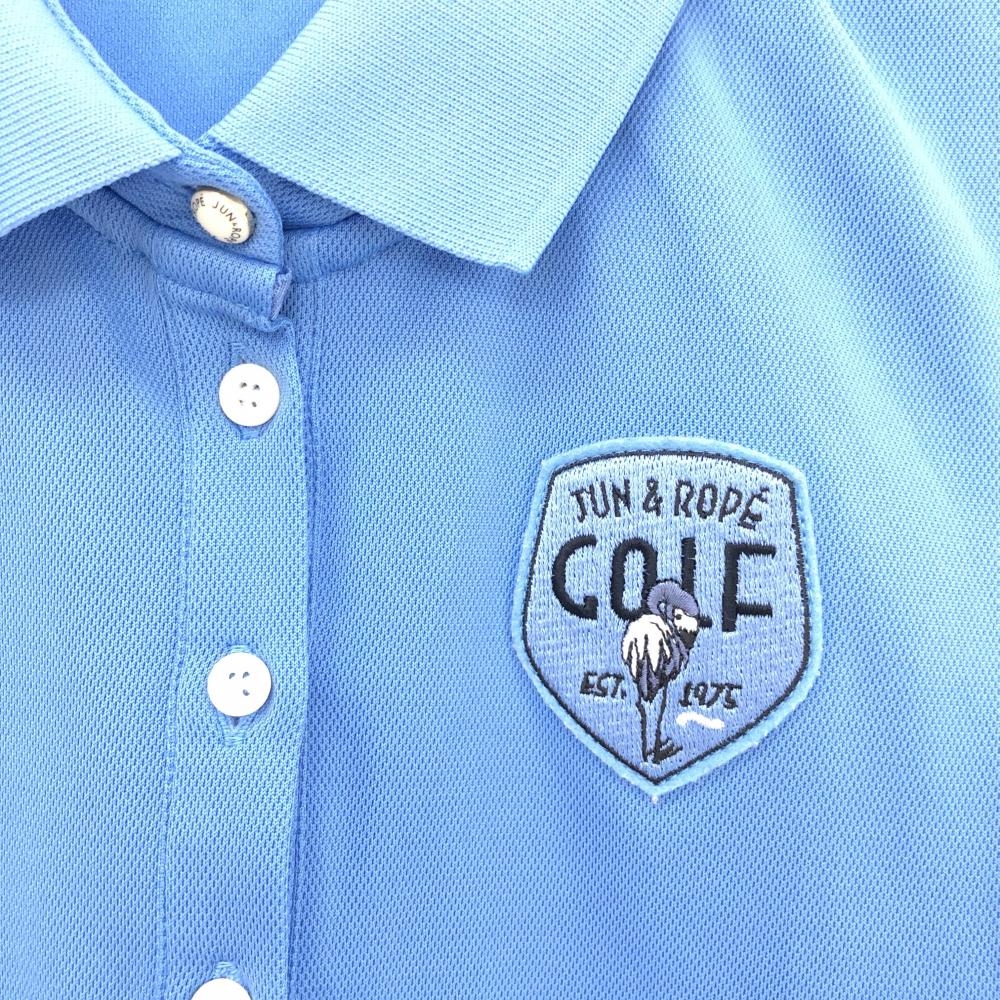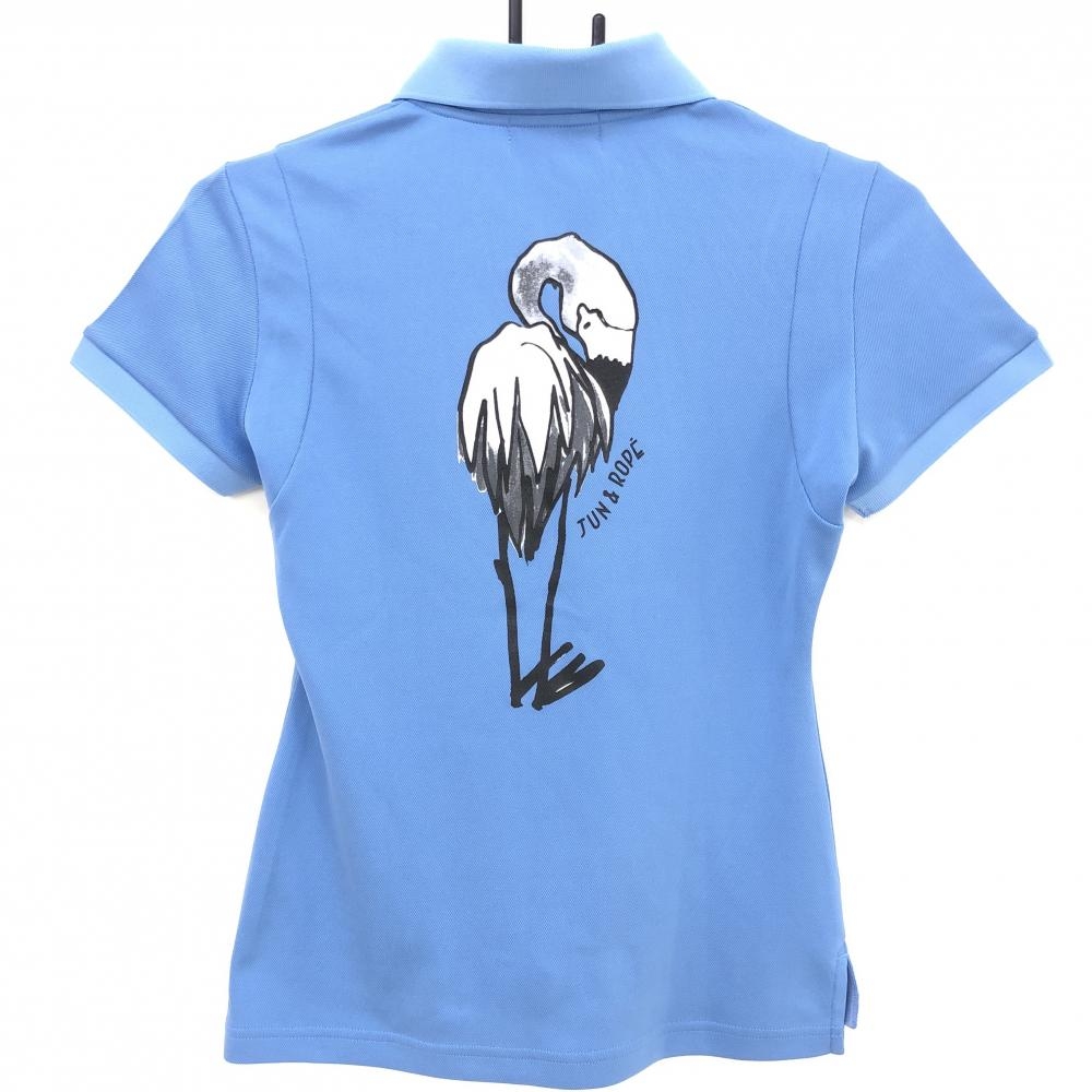 【超美品】ジュンアンドロペ 半袖ポロシャツ ライトブルー バックフラミンゴプリント 胸元ワッペン レディース S ゴルフウェア JUN&ROPE