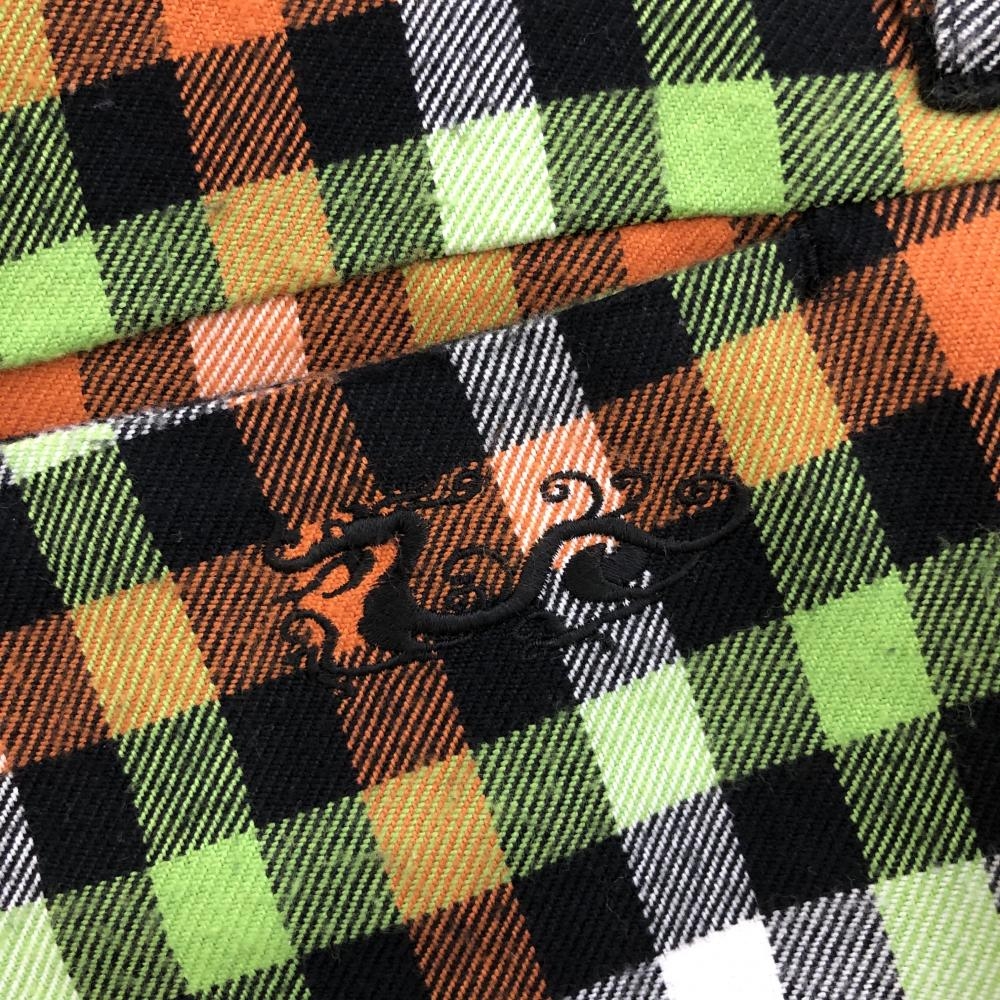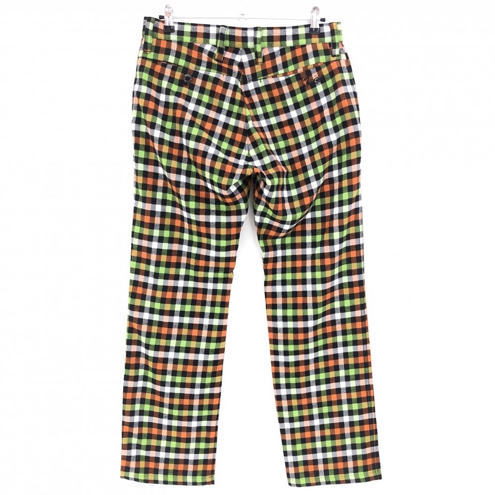【美品】ダンスウィズドラゴン パンツ ライトグリーン×オレンジ チェック 表微起毛 メンズ 3(L) ゴルフウェア Dance With Dragon
