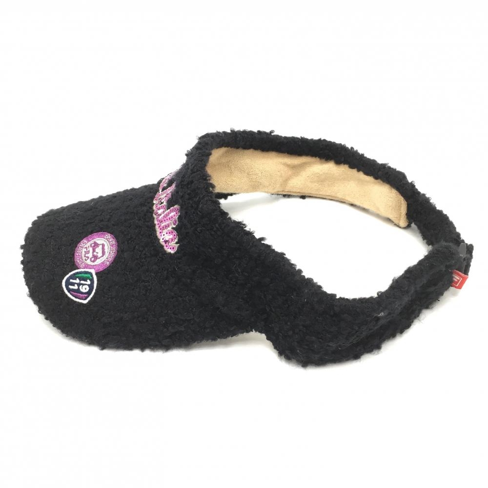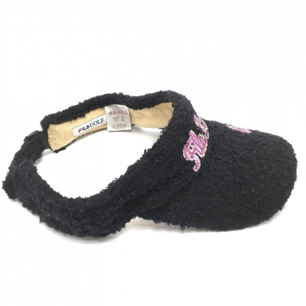 【美品】フィラゴルフ サンバイザー 黒×パープル スパンコール ボア調 ゴルフウェア FILA GOLF