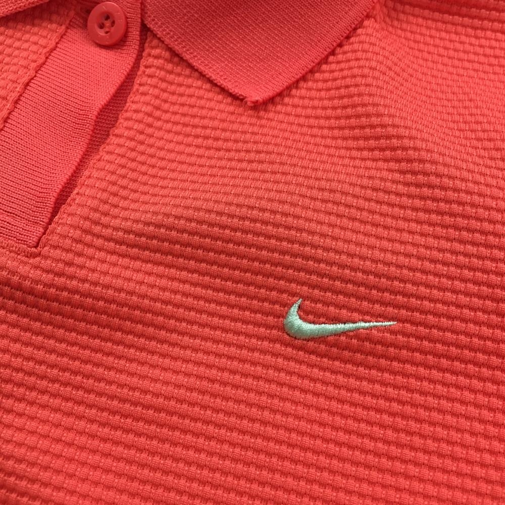 【美品】ナイキゴルフ 半袖ポロシャツ サーモンピンク 織生地 レディース S P CH ゴルフウェア NIKE