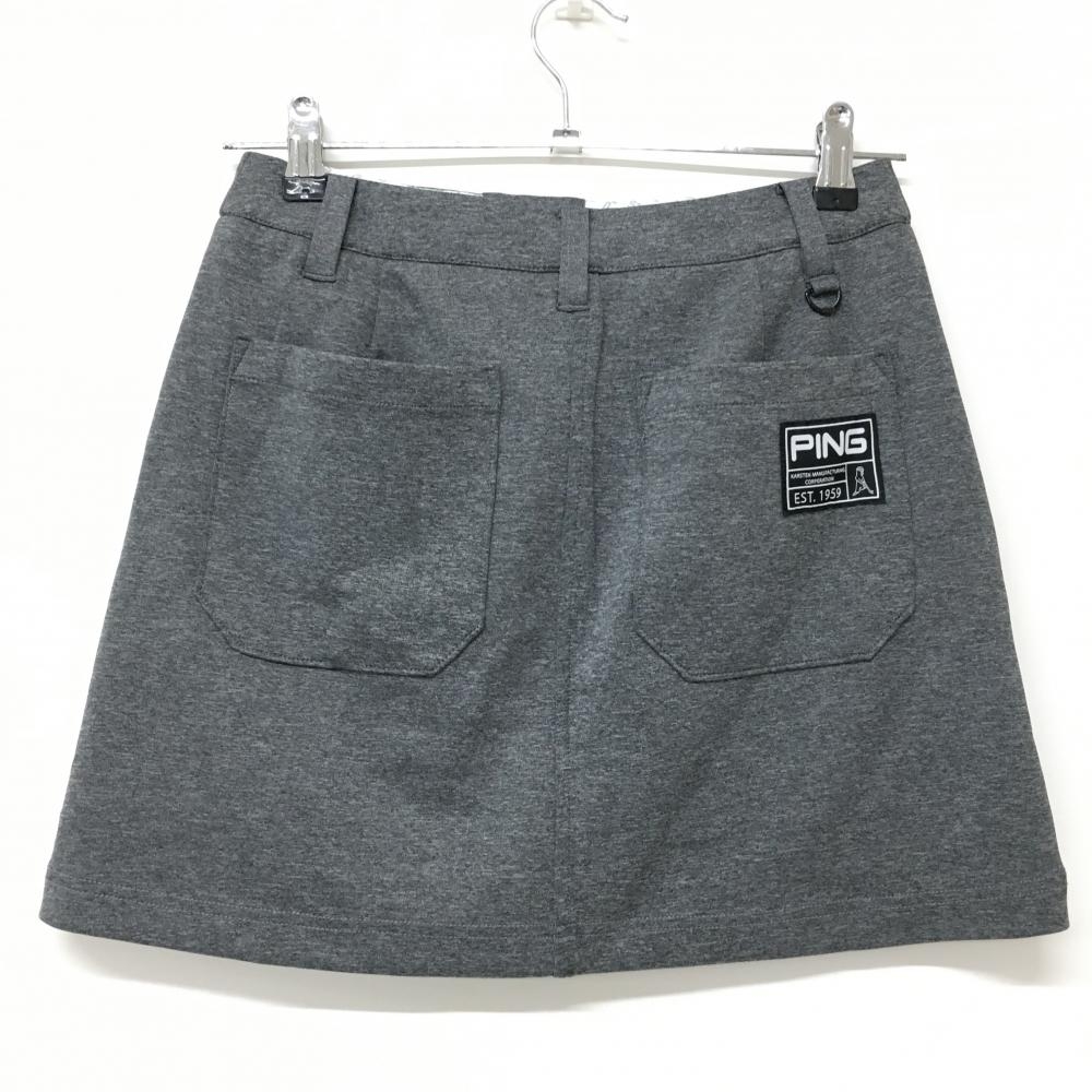 【超美品】ピン スカート 杢グレー 裾ロゴプリント レディース SS ゴルフウェア PING
