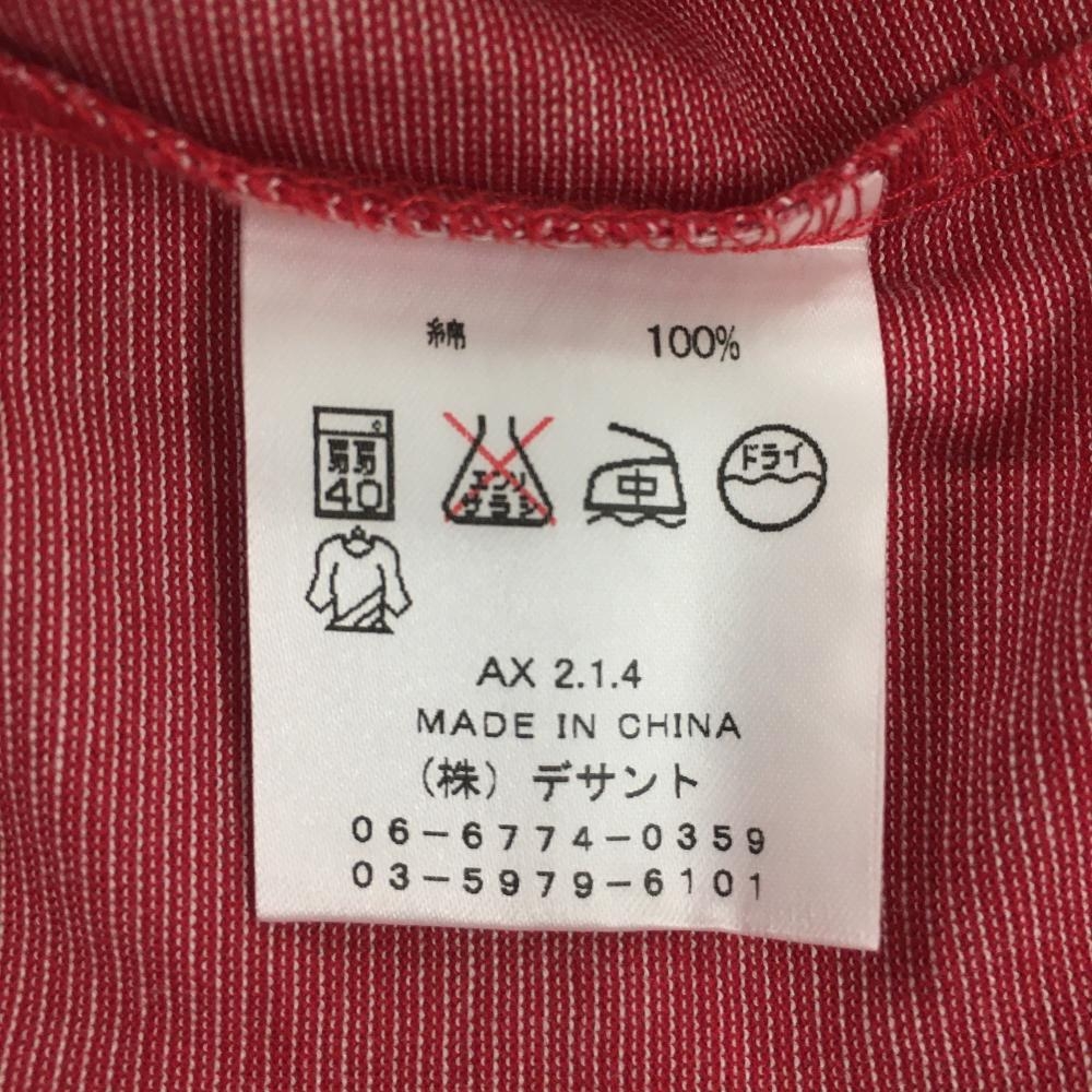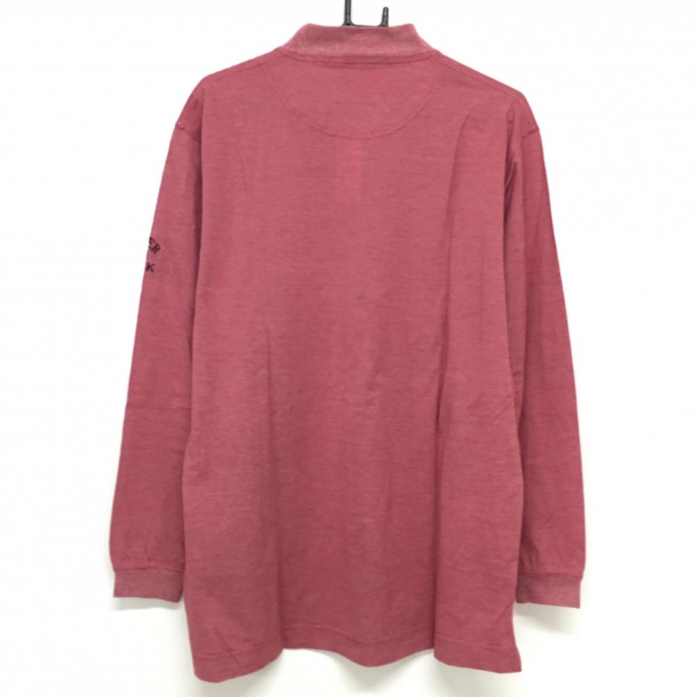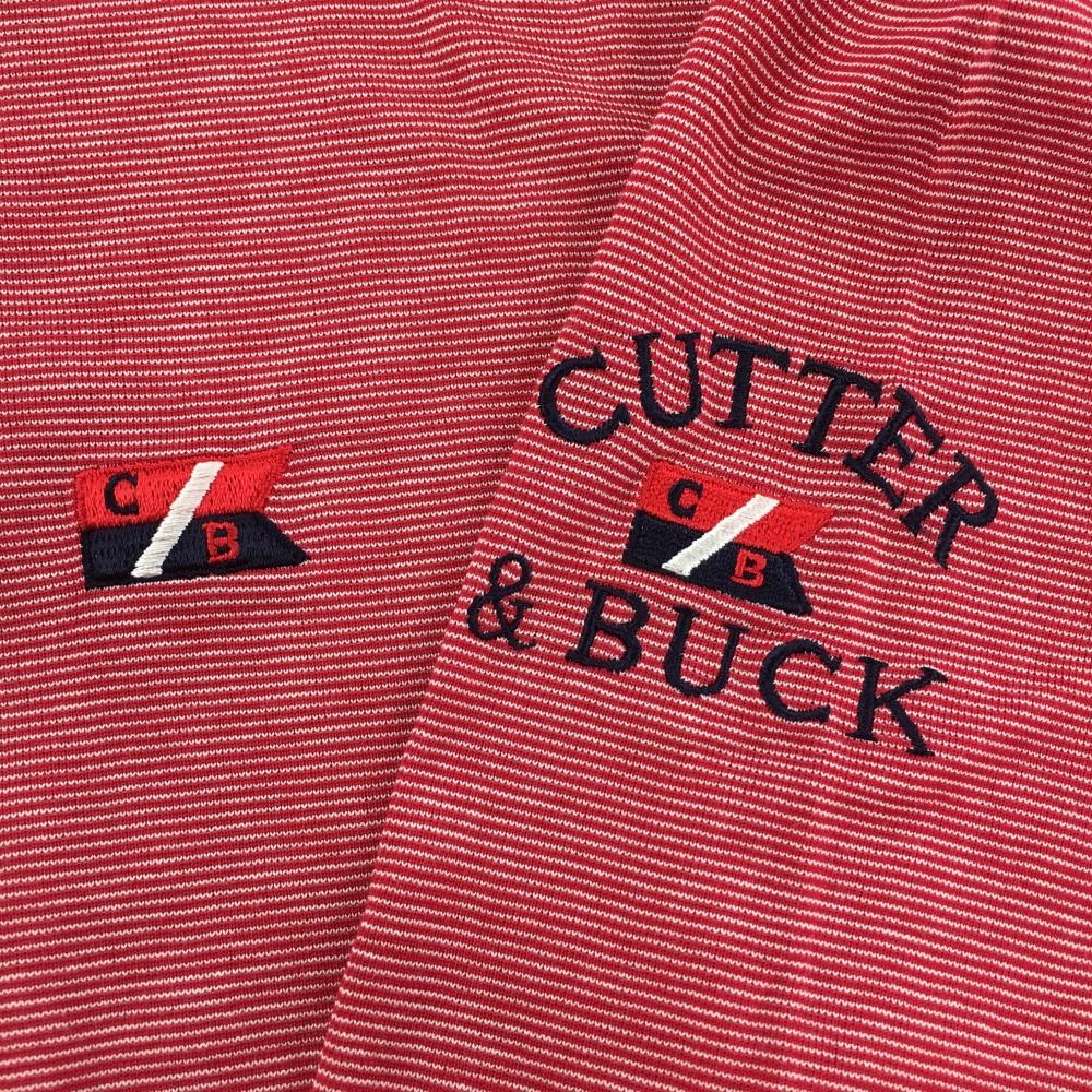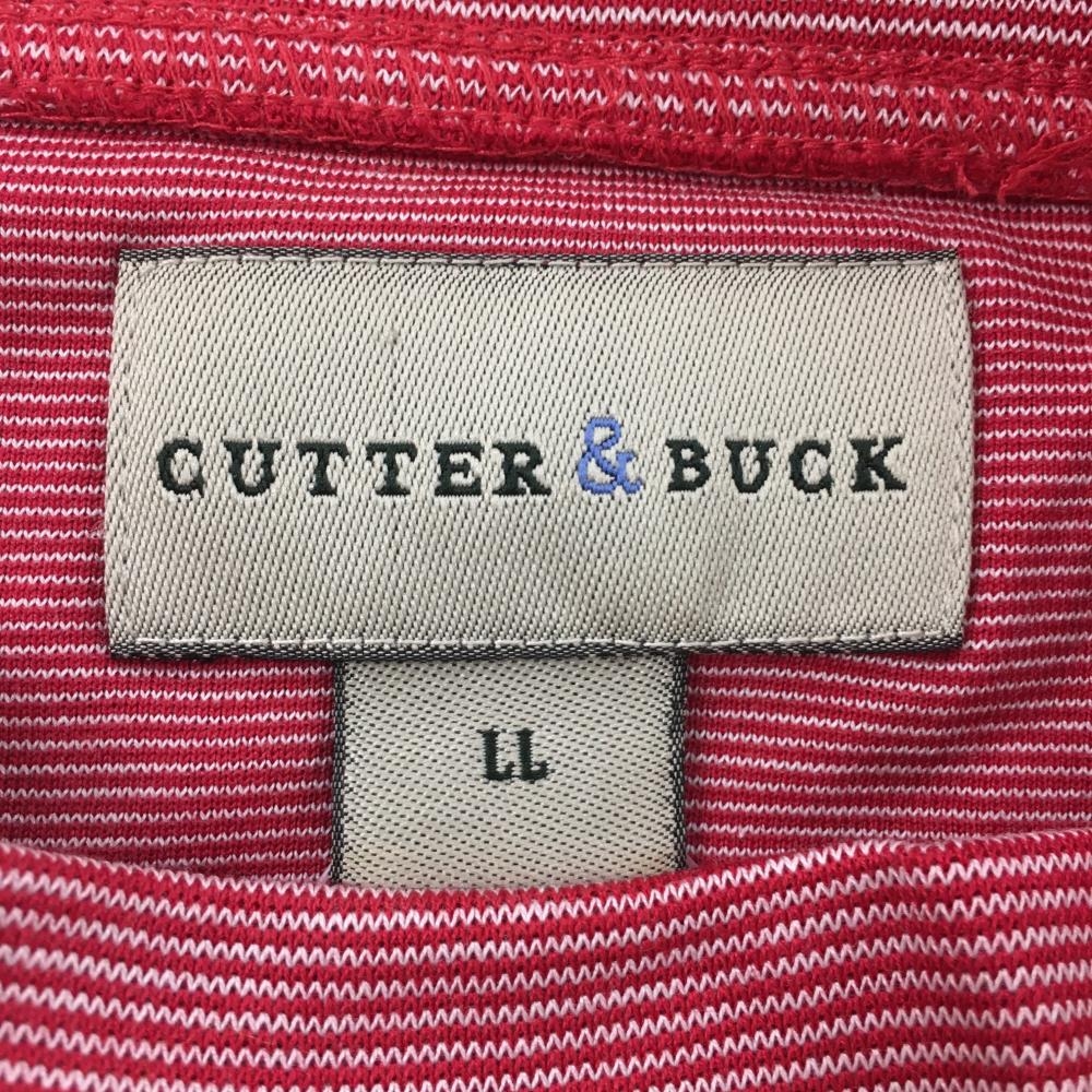 【美品】カッターアンドバック 長袖ハイネックシャツ レッド×白 ボーダー織生地 ロゴ刺しゅう メンズ LL ゴルフウェア CUTTER&BUCK