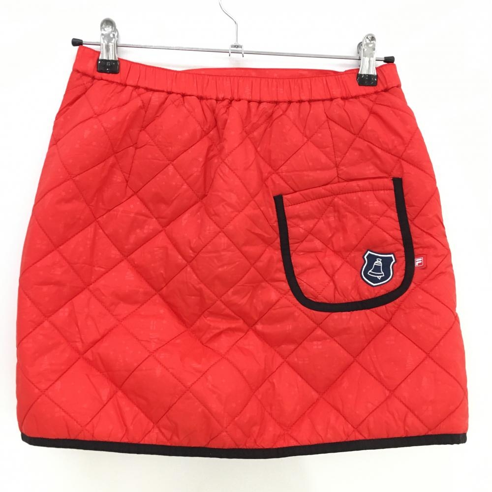 【超美品】フィラゴルフ 中綿スカート レッド クリスマス柄地模様 キルティング レディース ゴルフウェア FILA GOLF