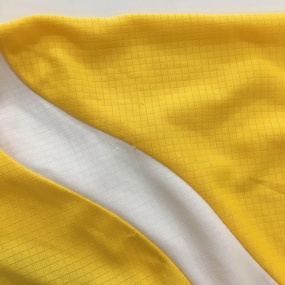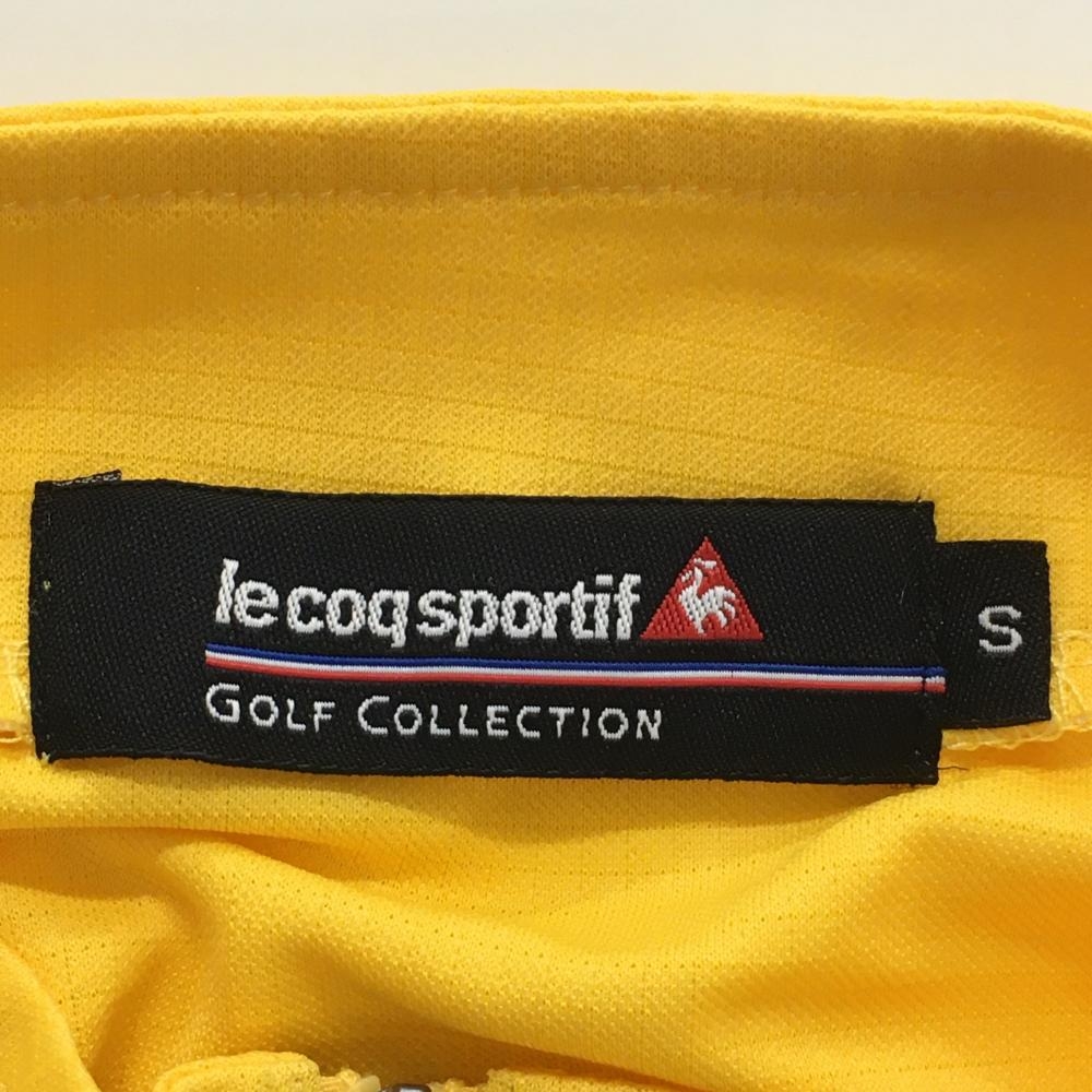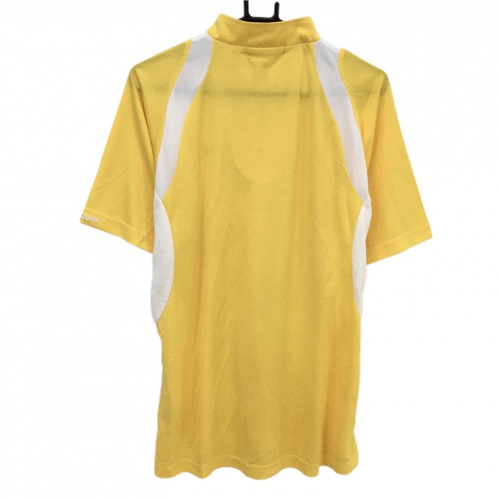 ルコック 半袖ハイネックシャツ イエロー×白 織生地 胸ロゴ刺しゅう ハーフジップ メンズ S ゴルフウェア le coq sportif
