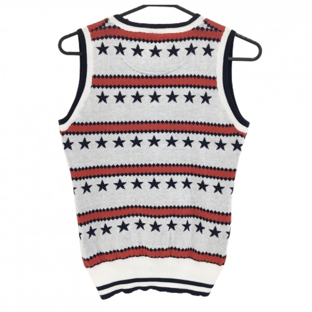 【美品】キャロウェイ ニットベスト 白×ネイビー×レッド Vネック 星柄 クマワッペン レディース M ゴルフウェア Callaway