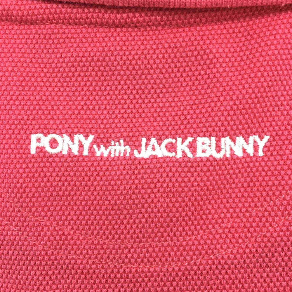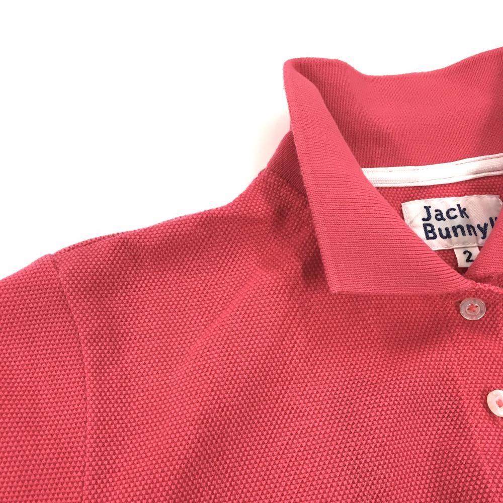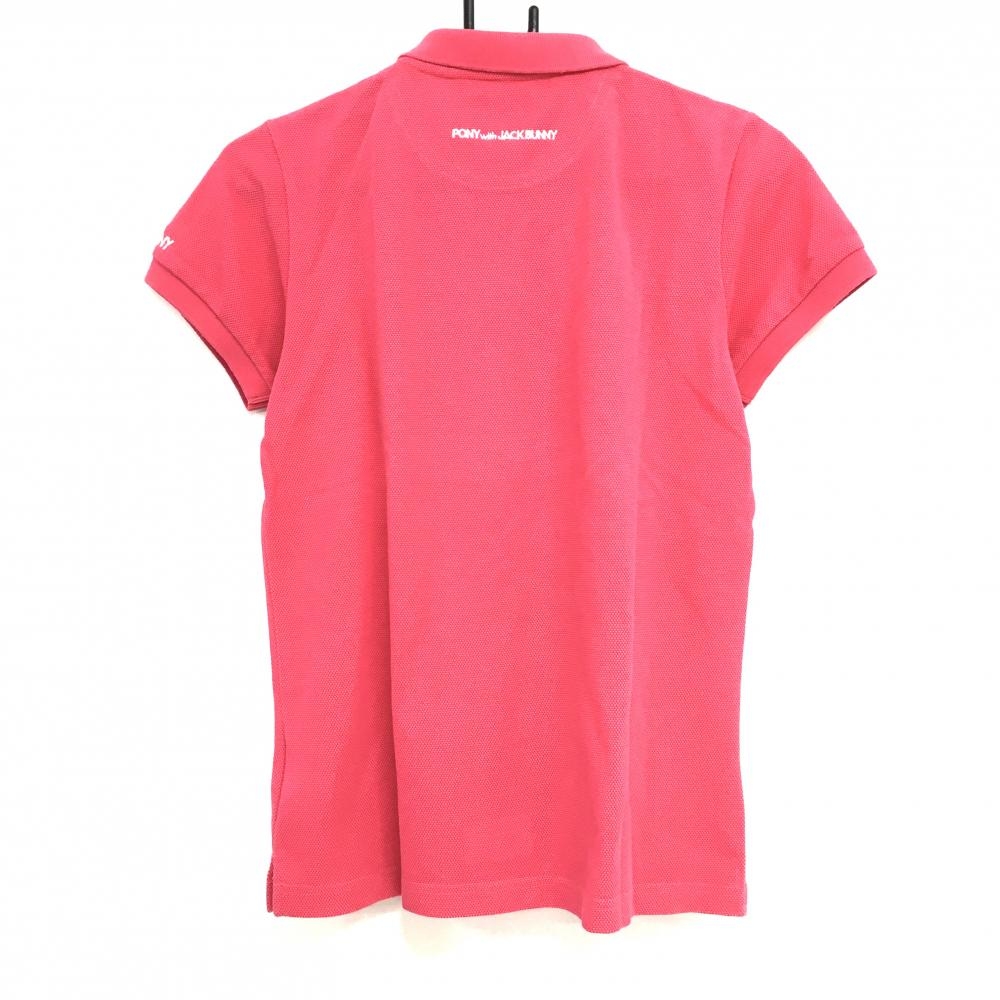 ジャックバニー 半袖ポロシャツ ピンク×白 フロントプリント 袖ロゴ刺しゅう レディース 2(L) ゴルフウェア Jack Bunny