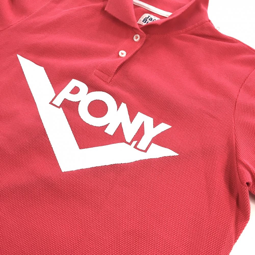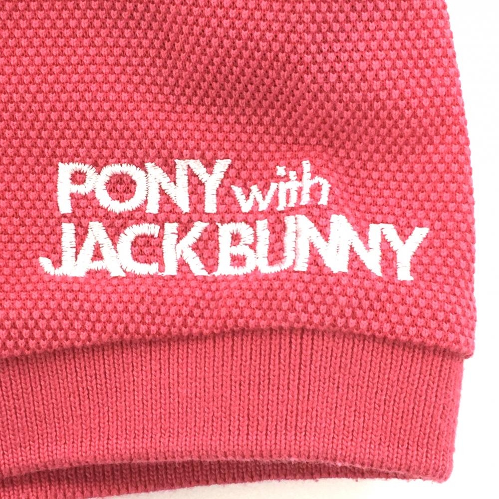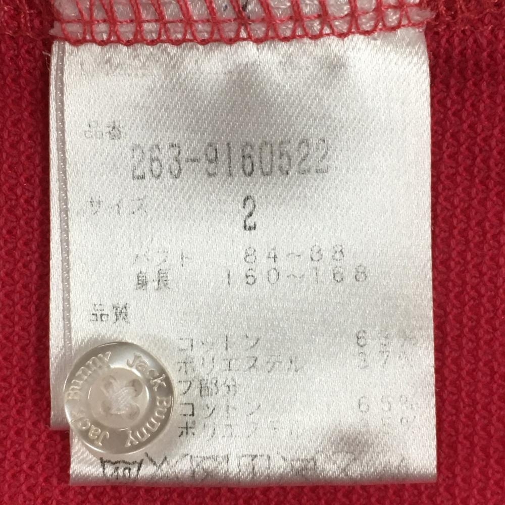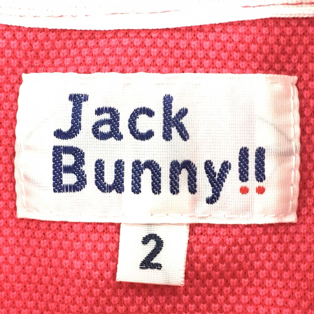 ジャックバニー 半袖ポロシャツ ピンク×白 フロントプリント 袖ロゴ刺しゅう レディース 2(L) ゴルフウェア Jack Bunny