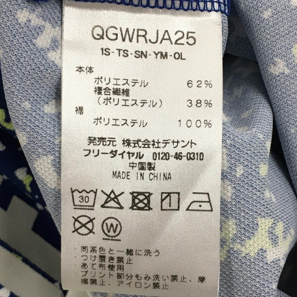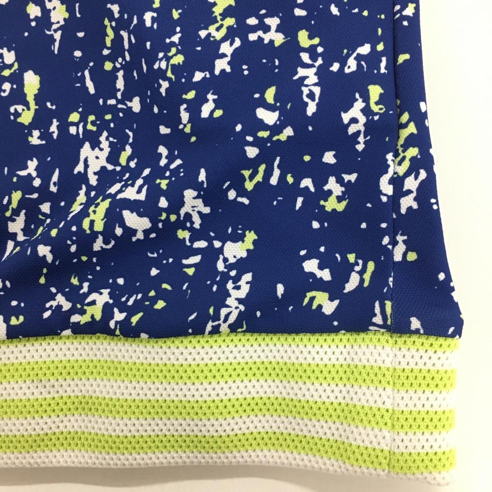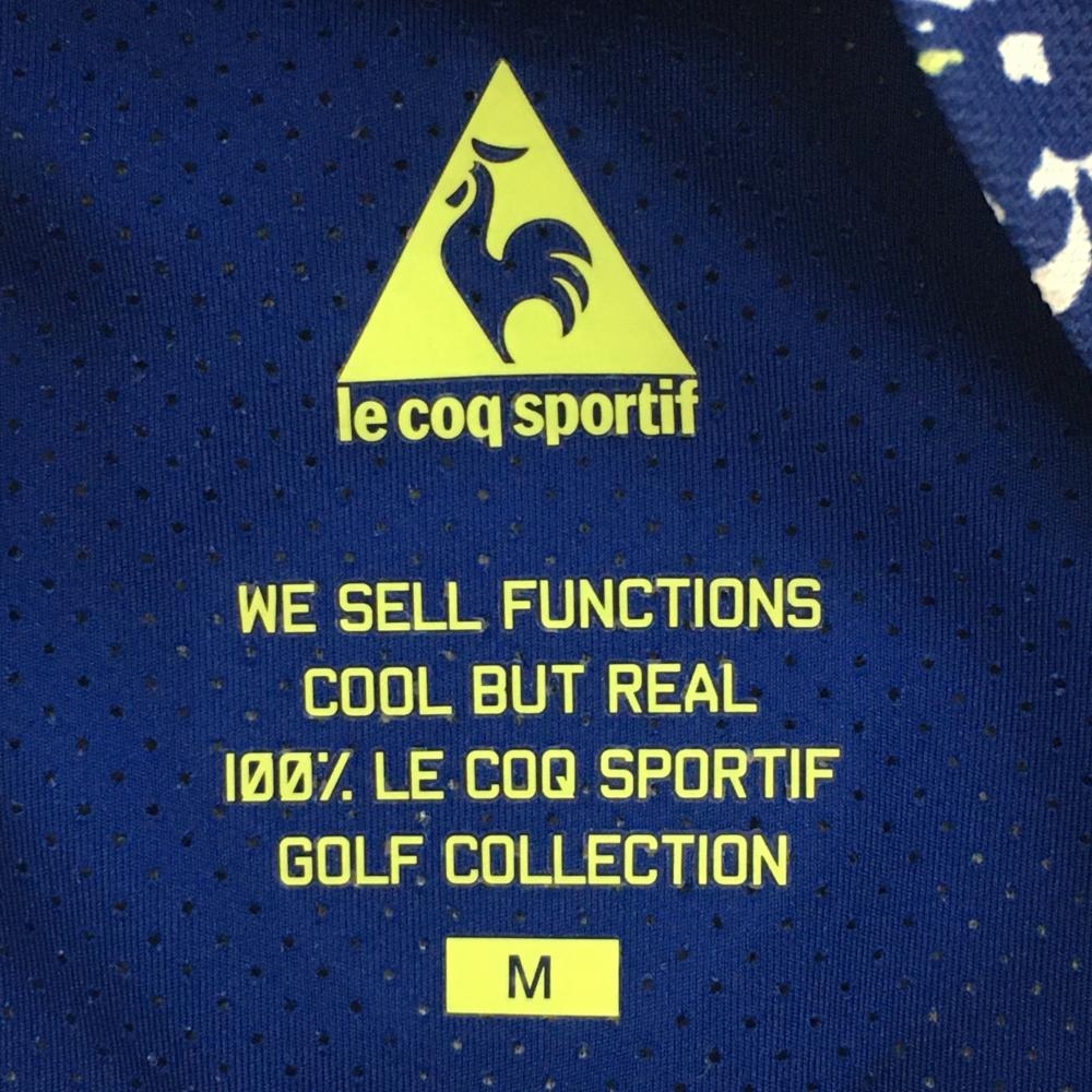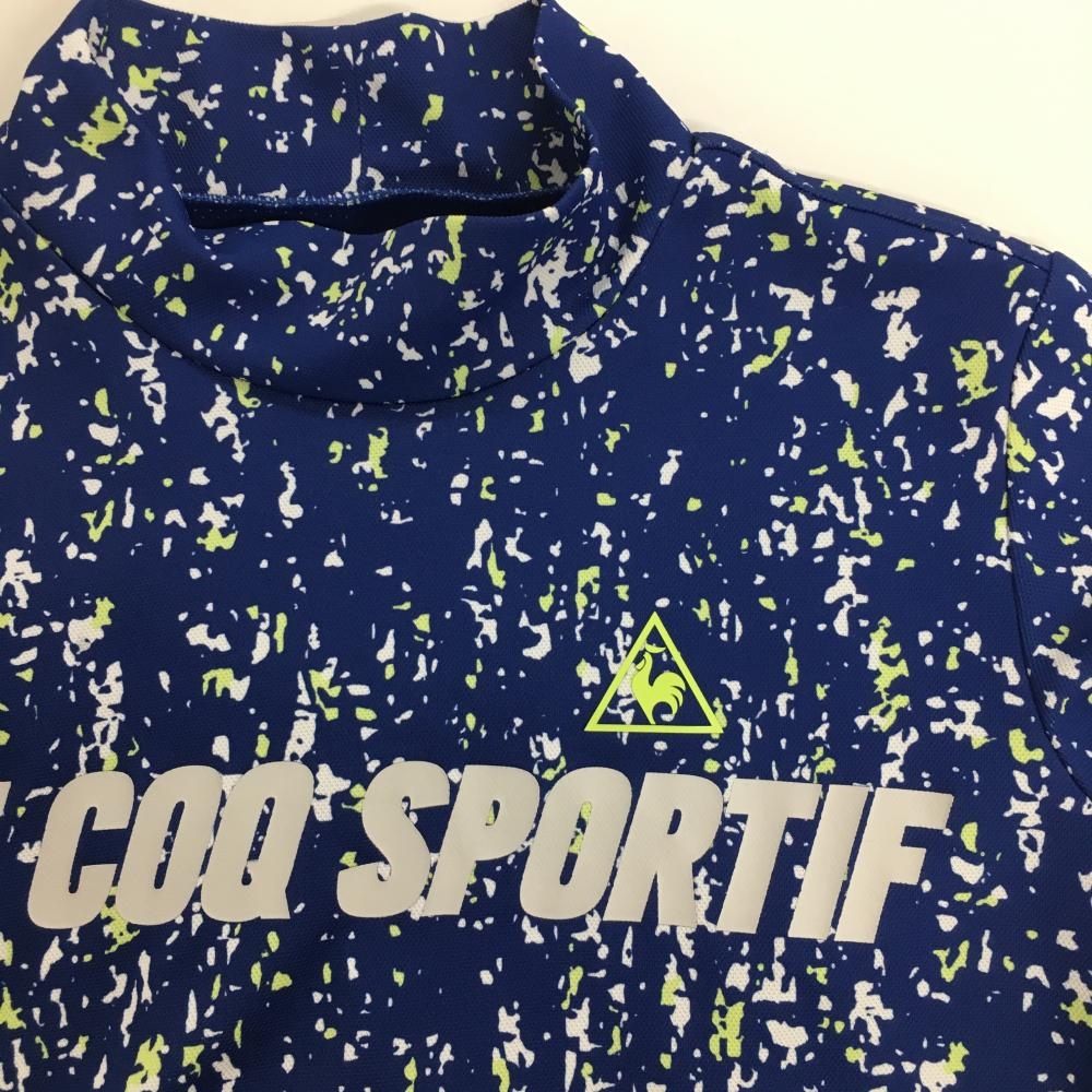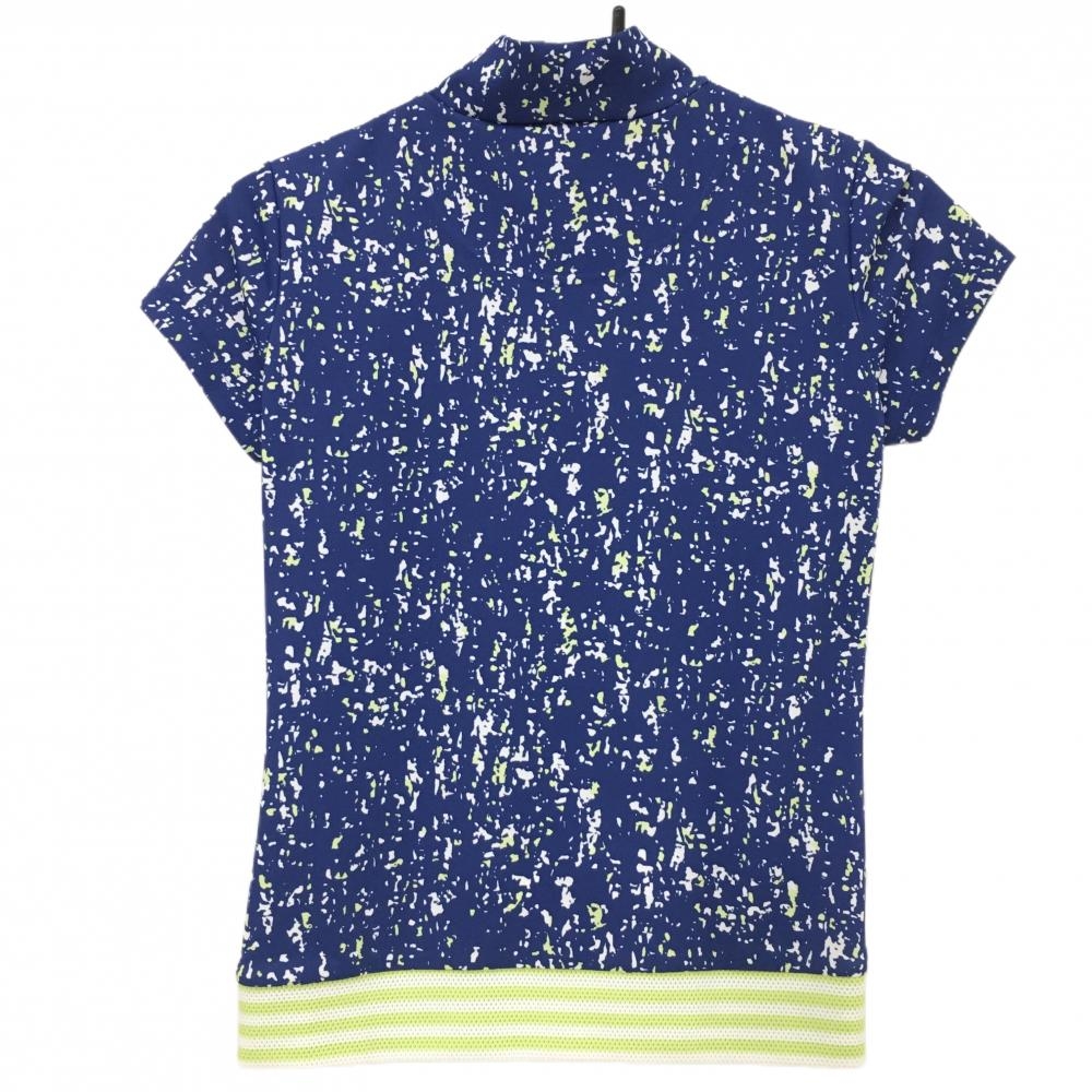 【超美品】ルコックゴルフ 半袖ハイネックシャツ ブルー×白 総柄 胸プリント 裾ボーダー レディース M ゴルフウェア le coq sportif