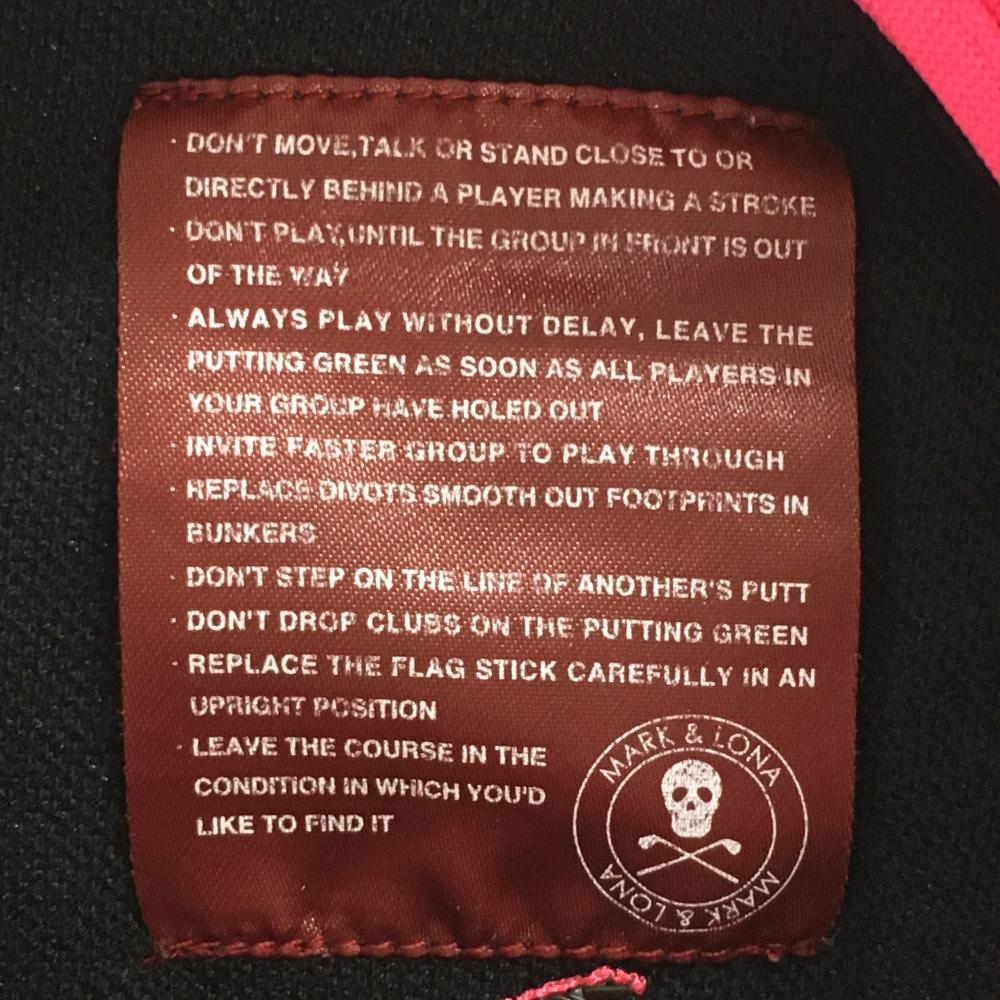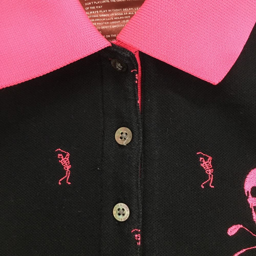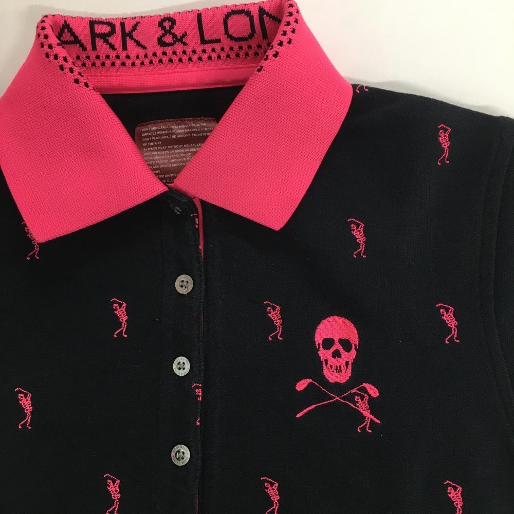 マークアンドロナ 半袖ポロシャツ 黒×蛍光ピンク 刺しゅう総柄 スカル レディース S ゴルフウェア MARK&LONA