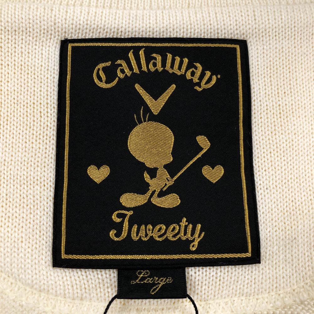 【新品】キャロウェイ×Tweety ニットベスト 白×イエロー 総柄 ウール混 スパンコールロゴ レディース Large ゴルフウェア Callaway