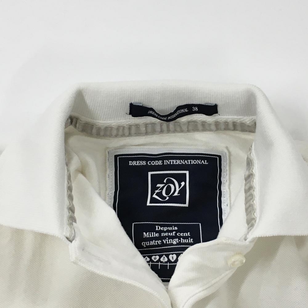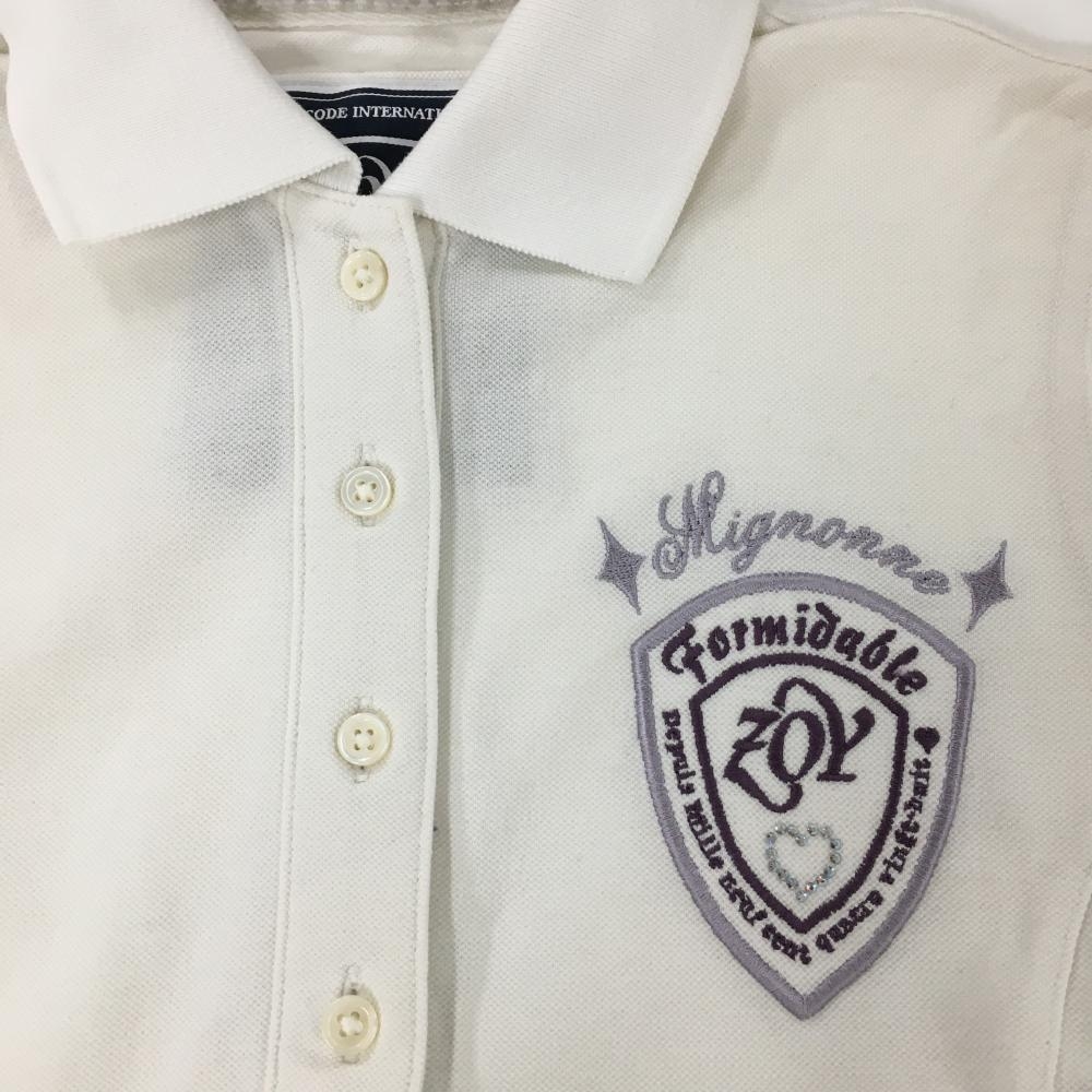 ゾーイ 半袖ポロシャツ 白×パープル ロゴ刺しゅう ラインストーン レディース 38(M) ゴルフウェア ZOY