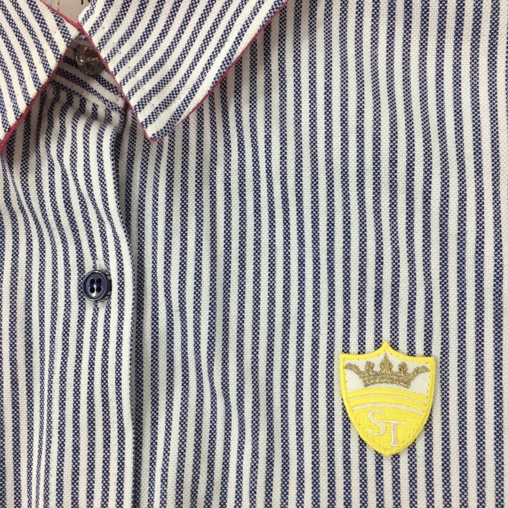 サマンサタバサNo.7 七分袖シャツ ネイビー×白 ストライプ レディース 38(M) ゴルフウェア Samantha Thavasa