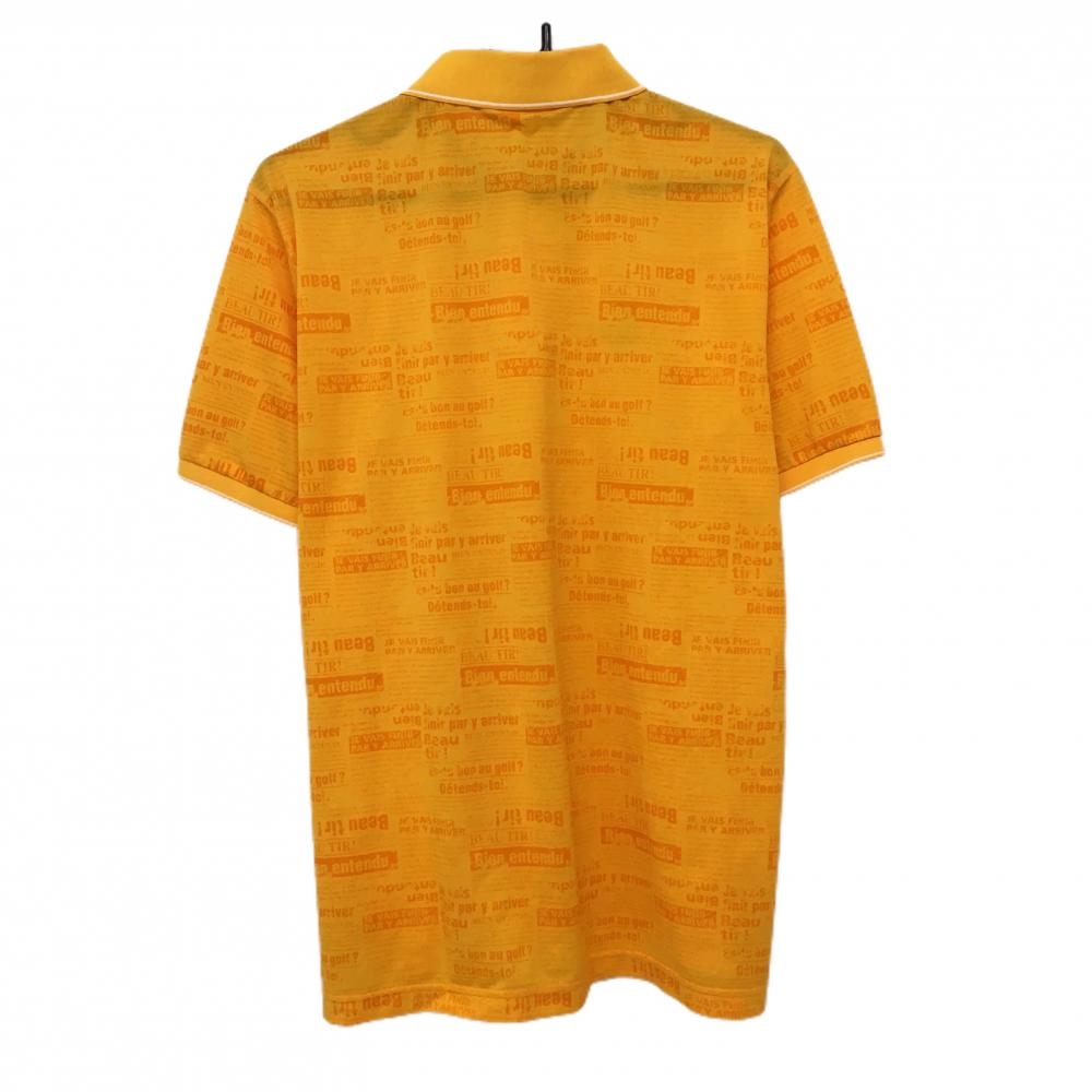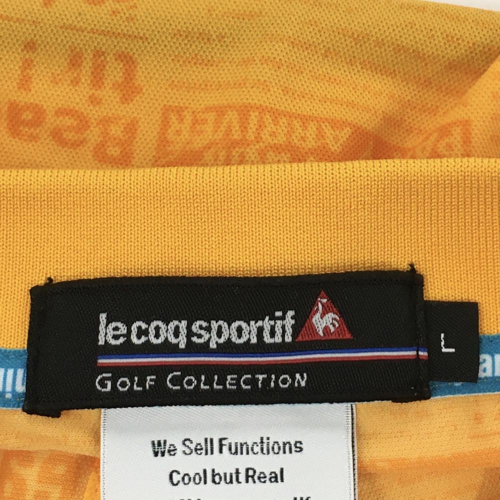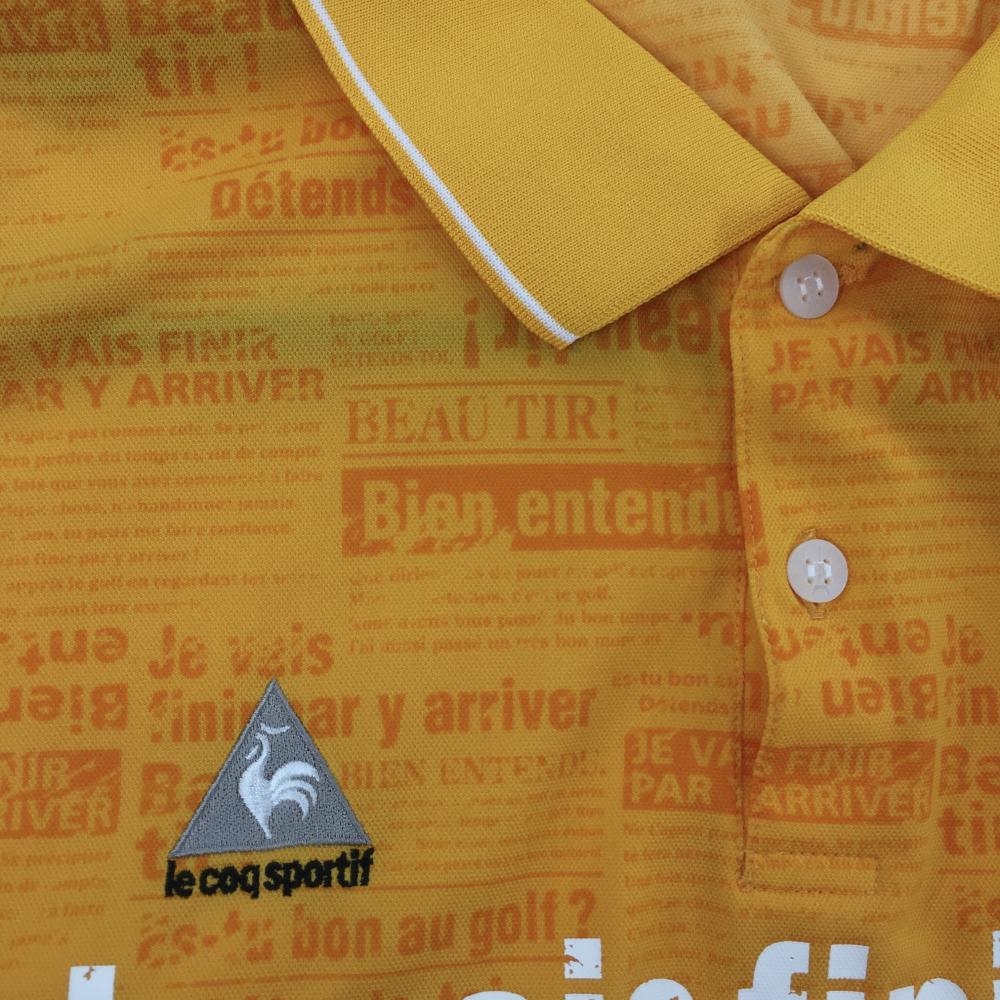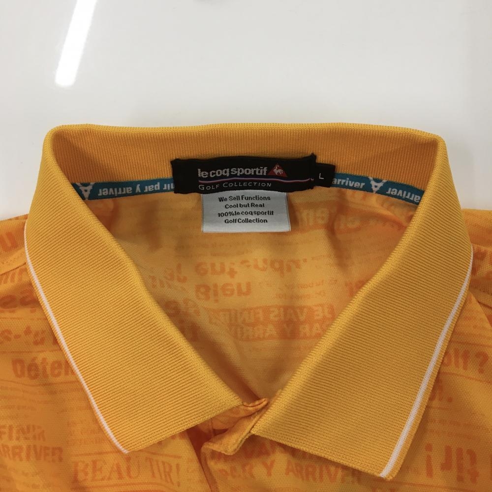 【美品】ルコック 半袖ポロシャツ オレンジ 英字総柄 かすれプリント メンズ L ゴルフウェア le coq sportif