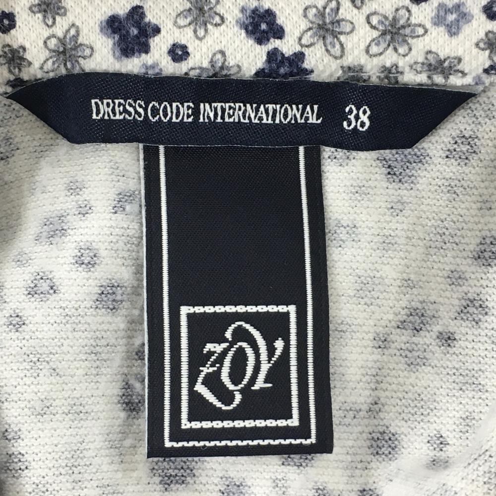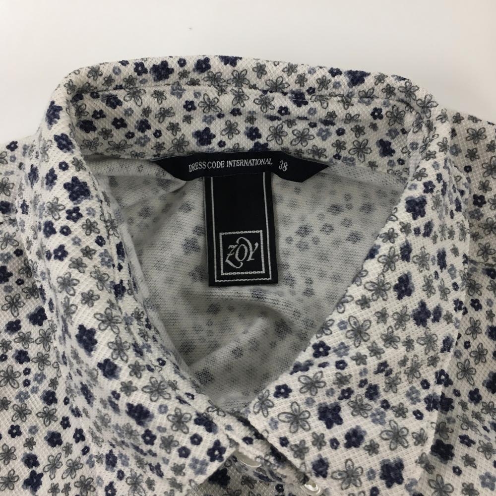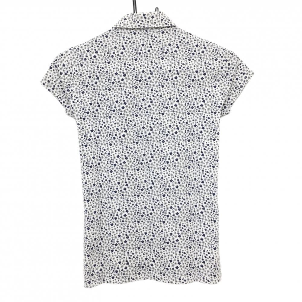 ゾーイ 半袖ポロシャツ 白×ネイビー 小花柄 ロゴ刺しゅう レディース 38(M) ゴルフウェア ZOY