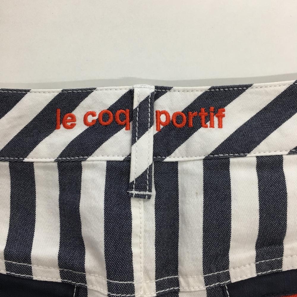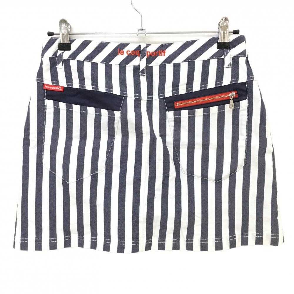 ルコック スカート 白×ネイビー ストライプ柄 ロゴ刺しゅう ジップポケット レディース 11 ゴルフウェア le coq sportif