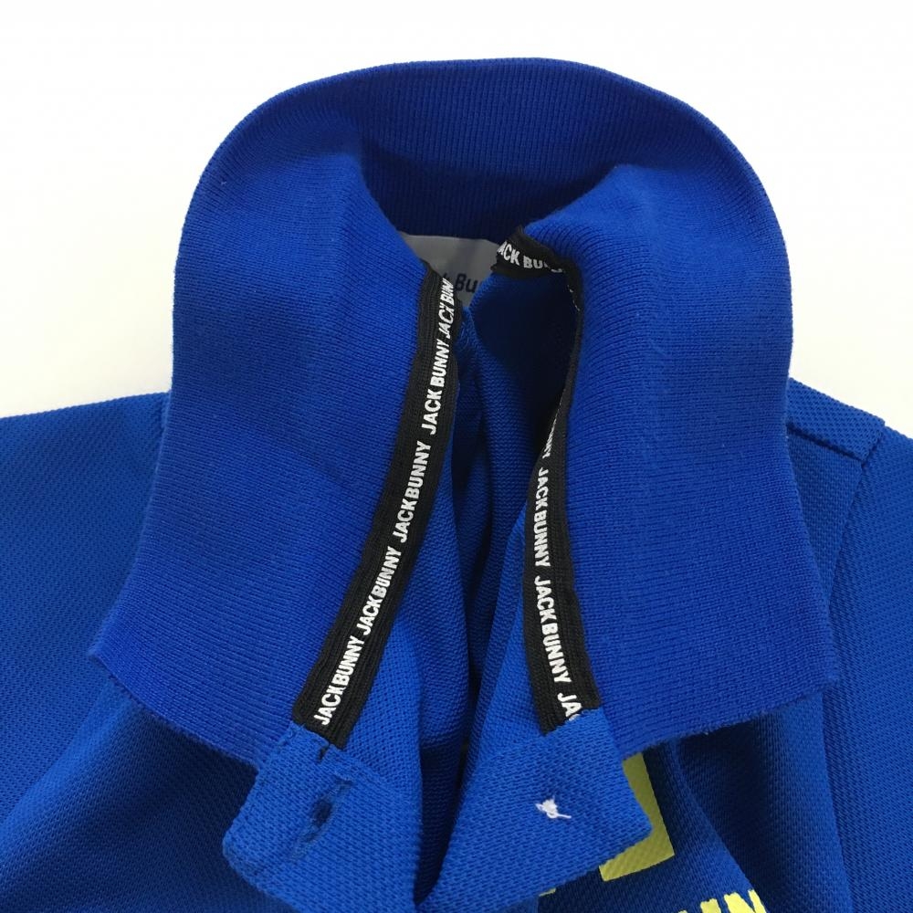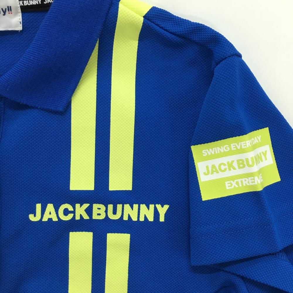 【美品】ジャックバニー 半袖ポロシャツ ブルー×イエロー 2ラインプリント レディース 0(S) ゴルフウェア Jack Bunny