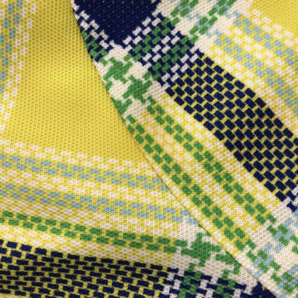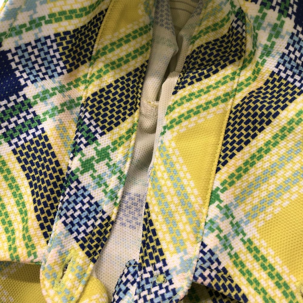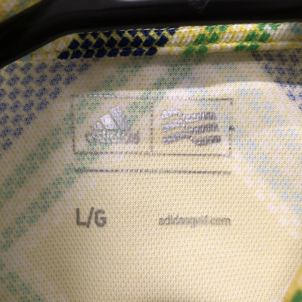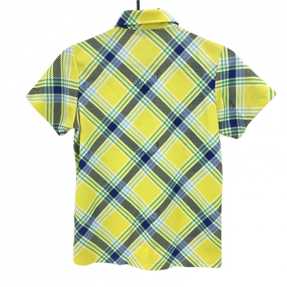 アディダス 半袖ポロシャツ イエロー×ブルー チェック ボタンダウン レディース L/G ゴルフウェア adidas