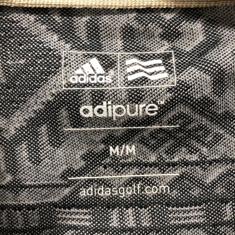【超美品】アディダス 半袖ポロシャツ 黒×白 総柄 adipure レディース M/M ゴルフウェア adidas