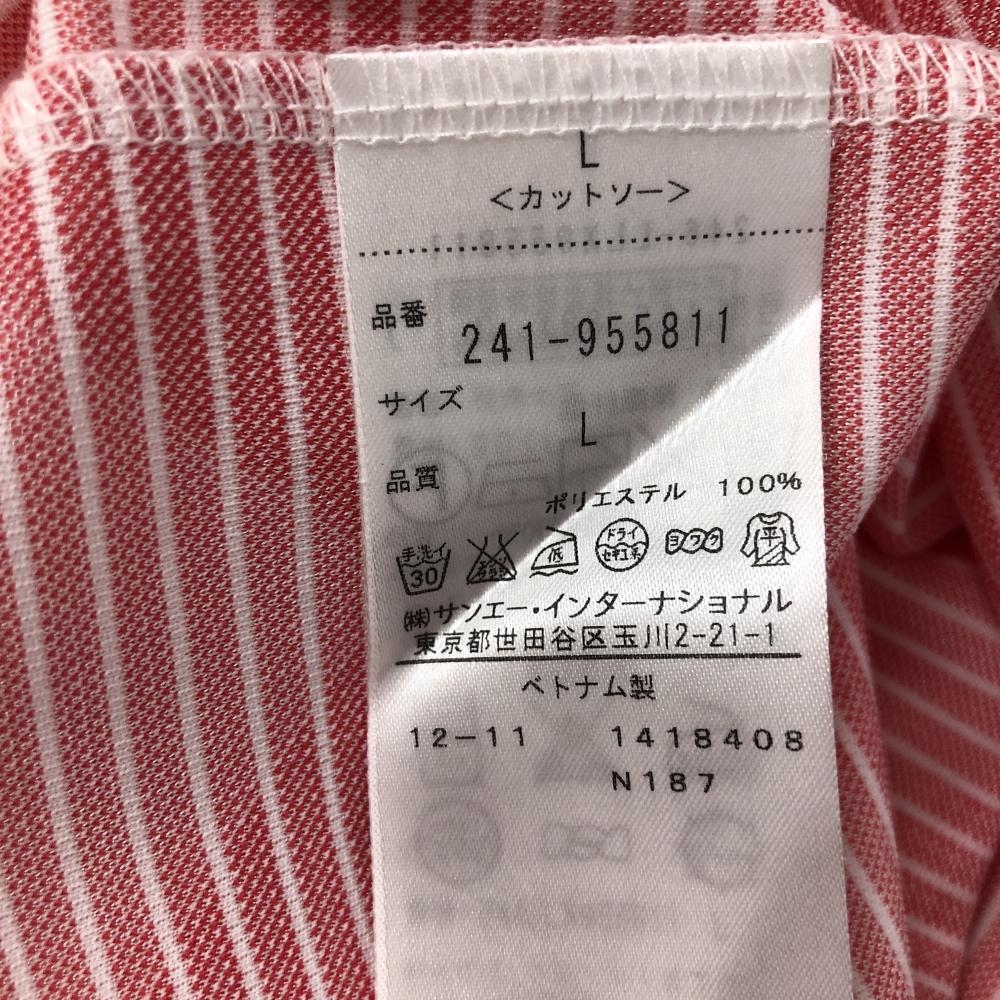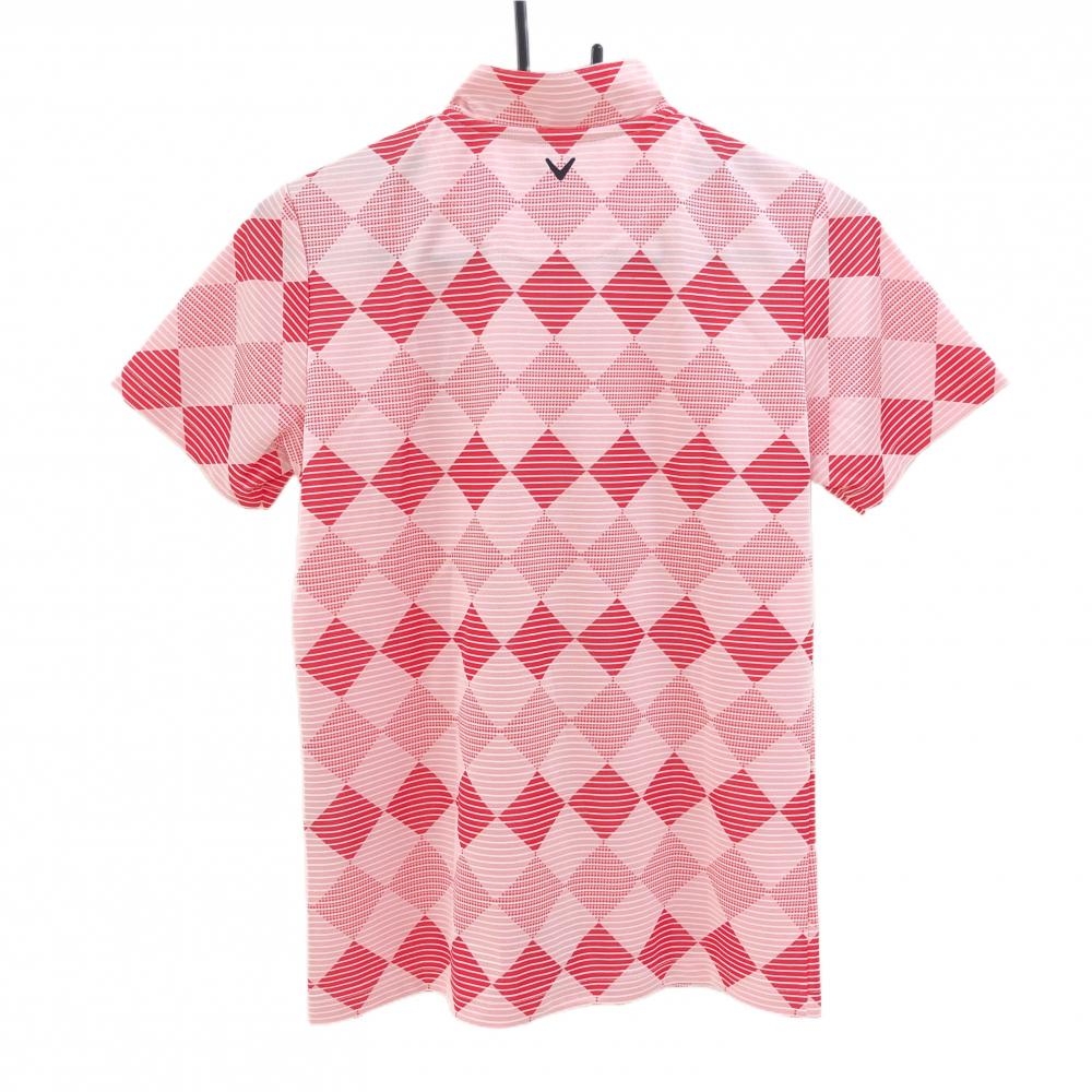 【超美品】キャロウェイ 半袖ハイネックシャツ ピンク×白 ブロックチェック調 ボーダー ハーフジップ レディース L ゴルフウェア Callaway