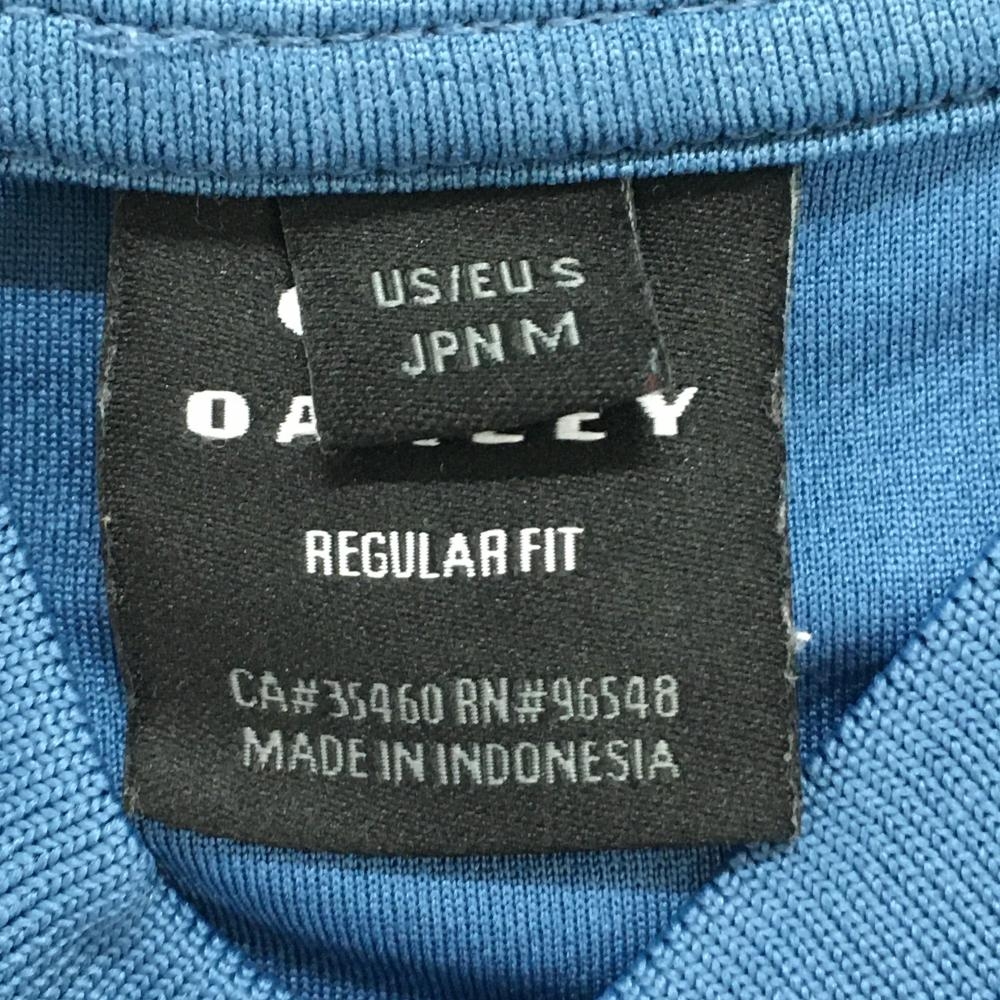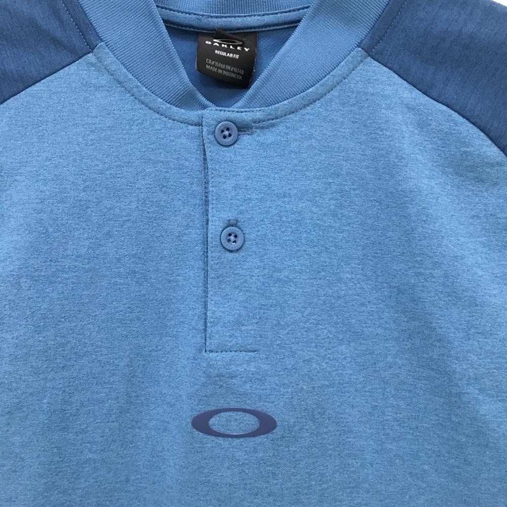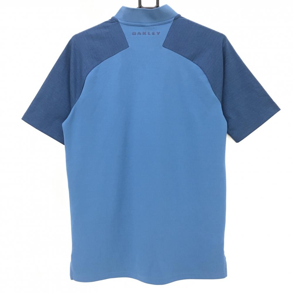 【超美品】オークリー スタンドカラーシャツ ブルー×ネイビー ロゴプリント メンズ M ゴルフウェア Oakley