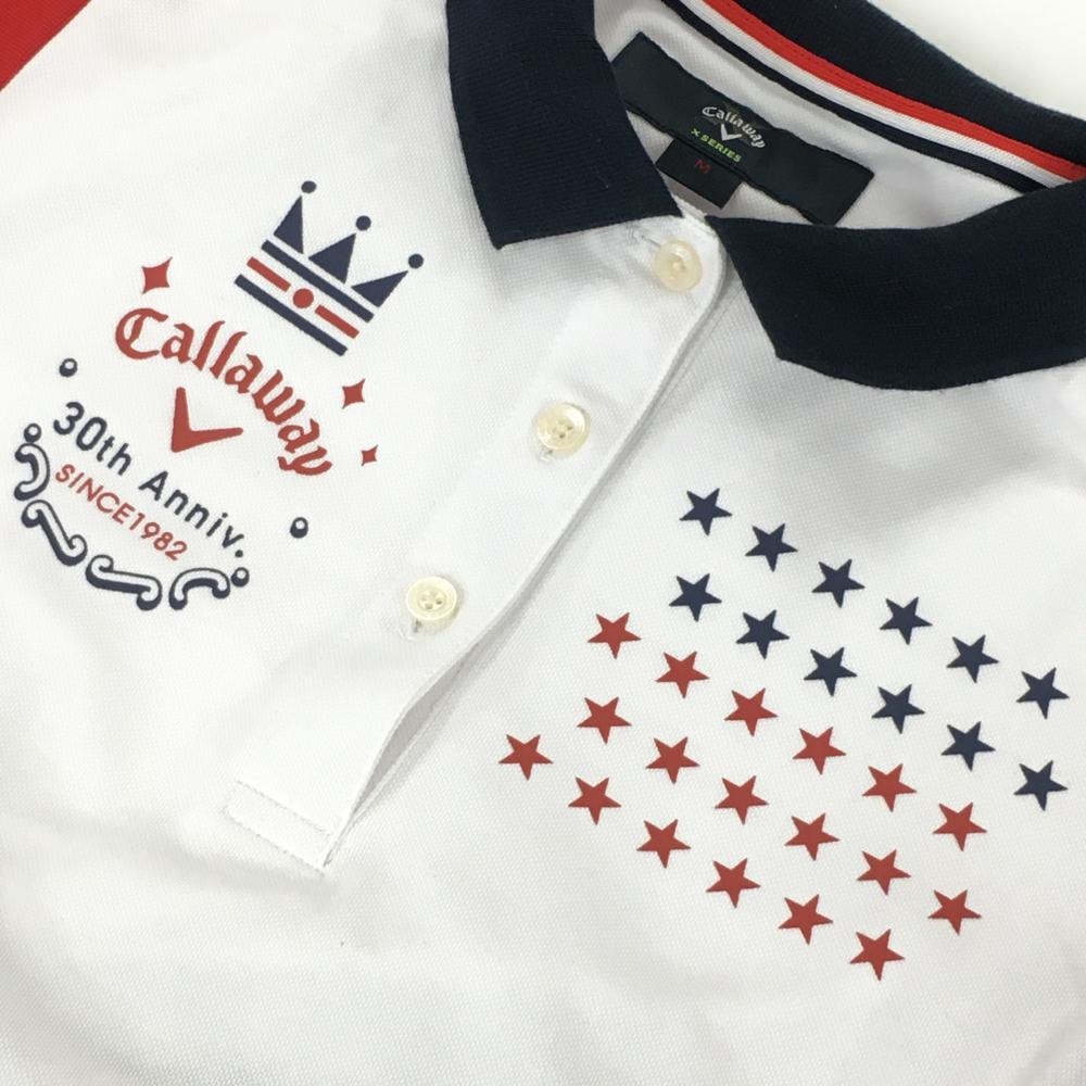 キャロウェイ 半袖ポロシャツ 白×ネイビー 胸星柄 レディース M ゴルフウェア Callaway