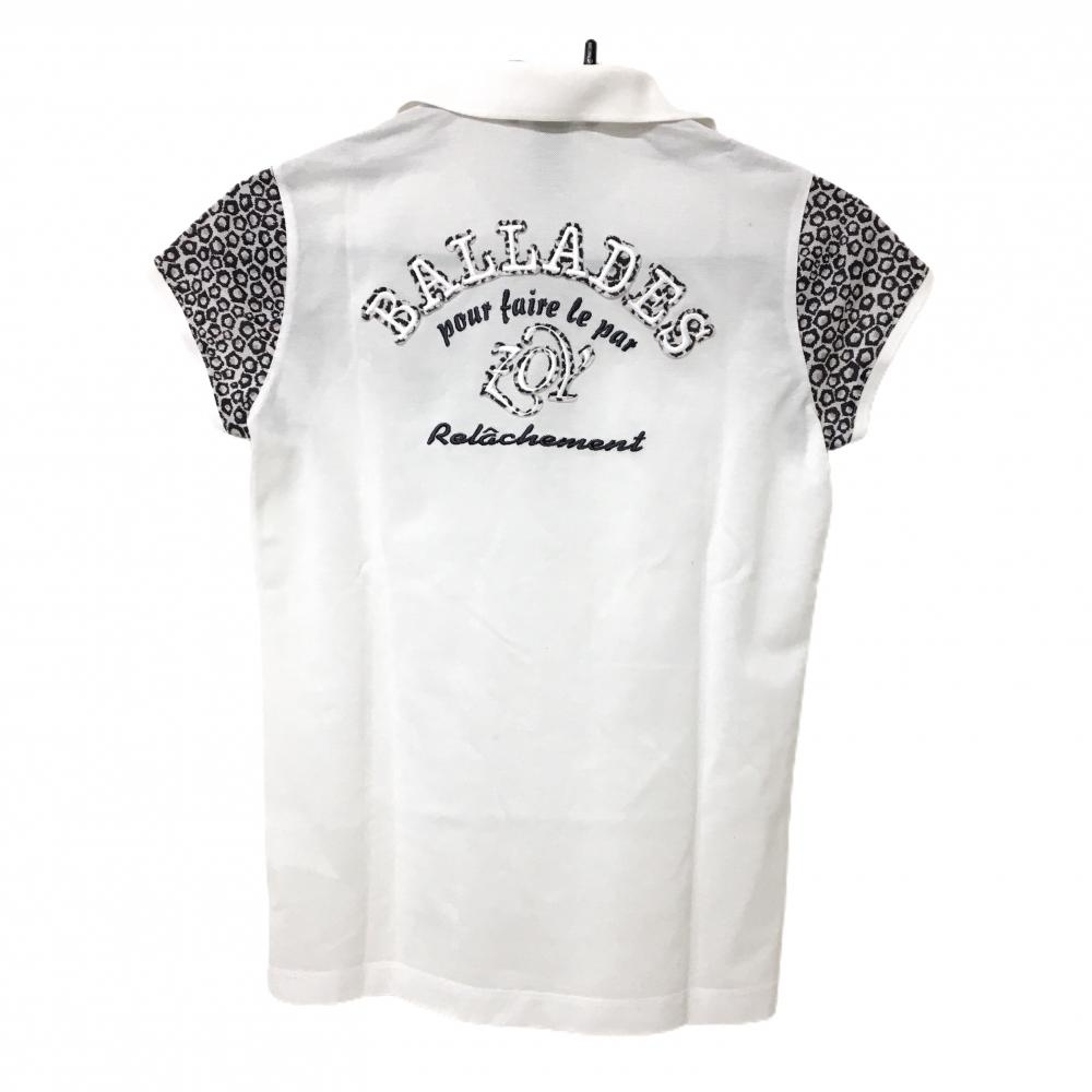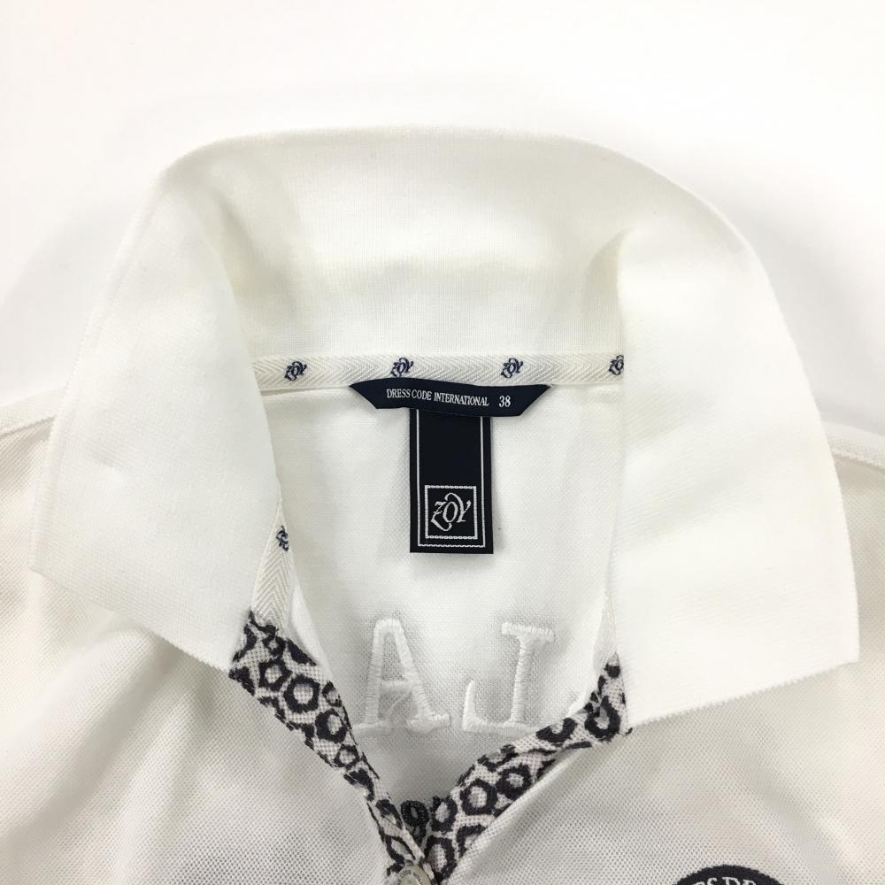 ゾーイ 半袖ポロシャツ 白×ブラウン 袖レオナード柄 ロゴ刺しゅう レディース 38(M) ゴルフウェア ZOY