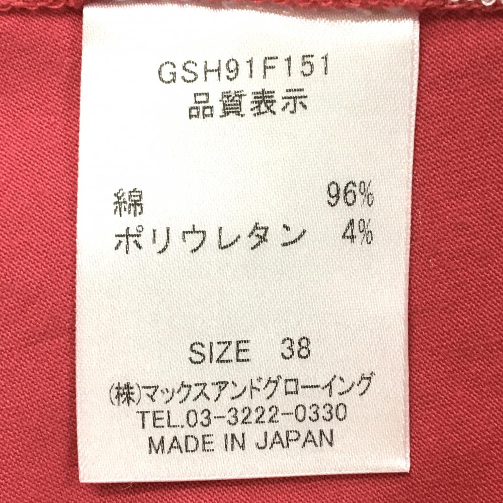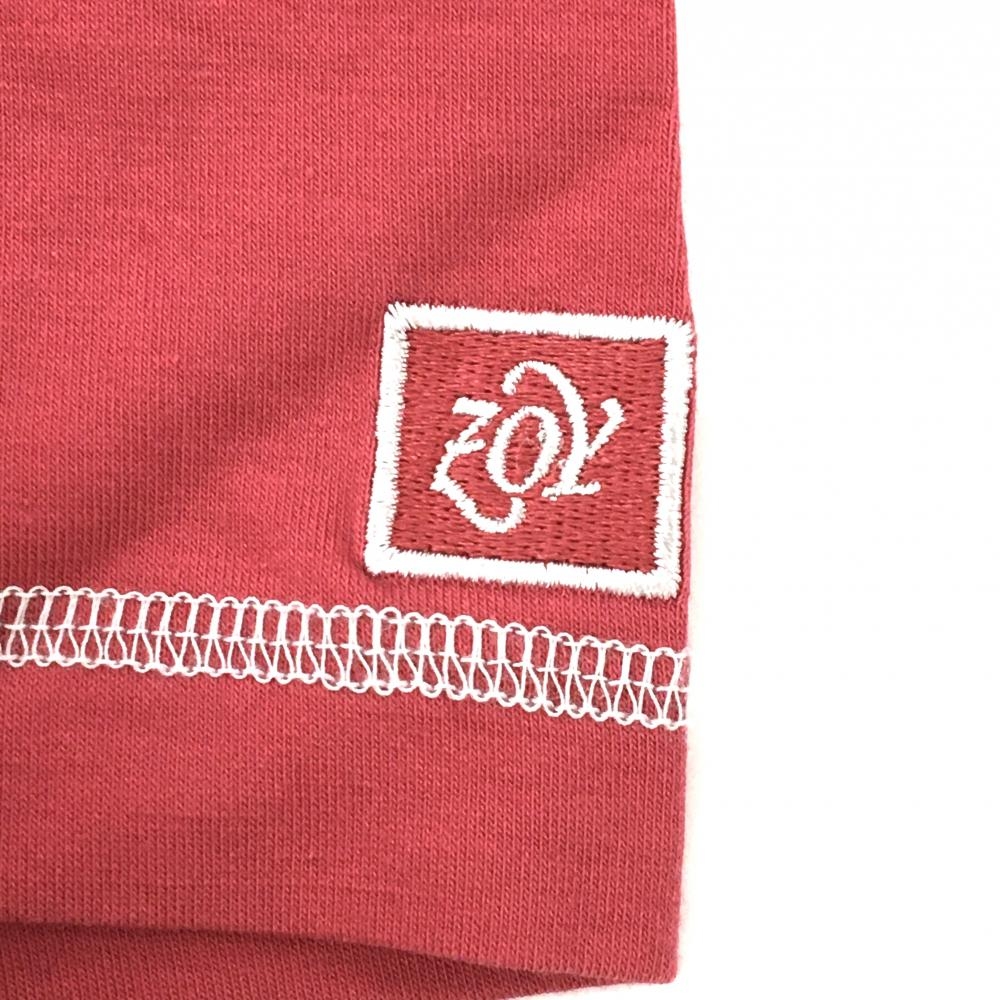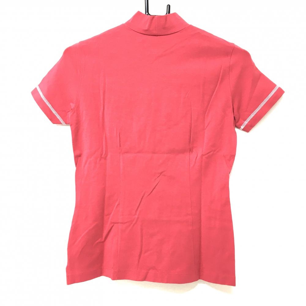 【超美品】ゾーイ 半袖ハイネックシャツ ピンク×白 フロント刺しゅう レディース 38(M) ゴルフウェア ZOY