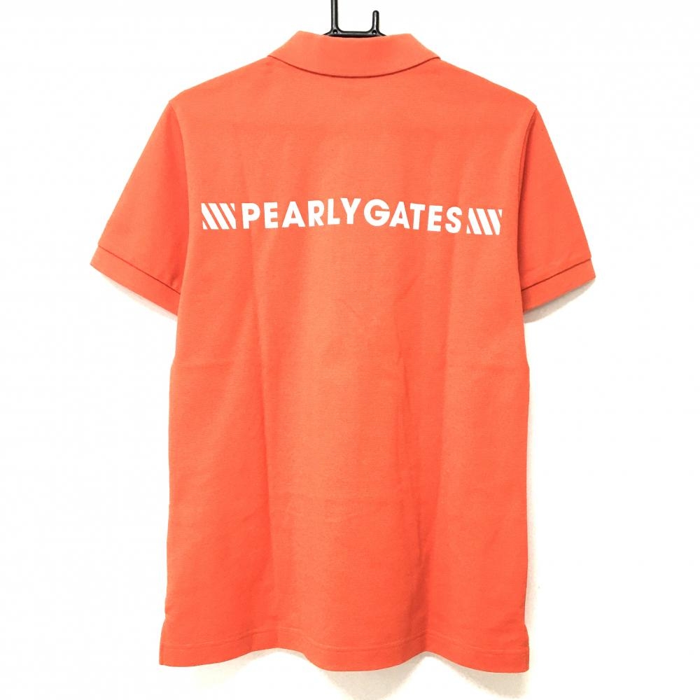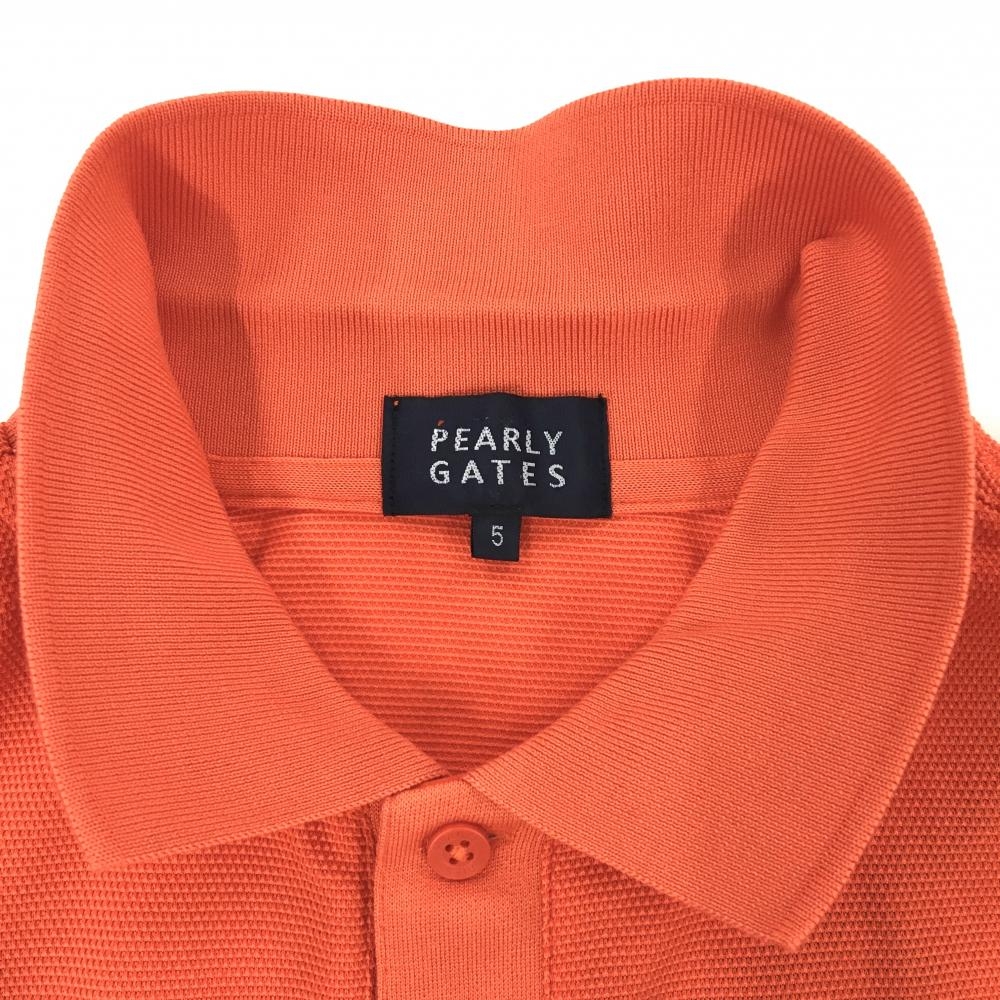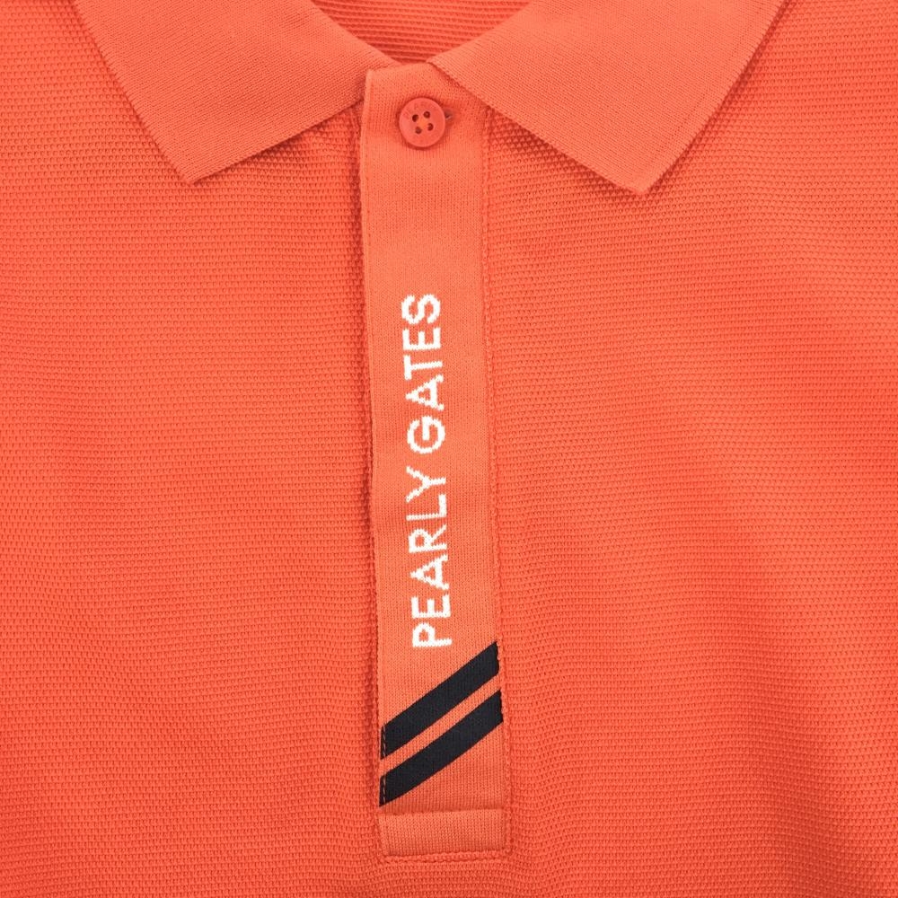 【美品】パーリーゲイツ 半袖ポロシャツ オレンジ×白 前立てロゴ メンズ 5(L) ゴルフウェア 2022年モデル PEARLY GATES
