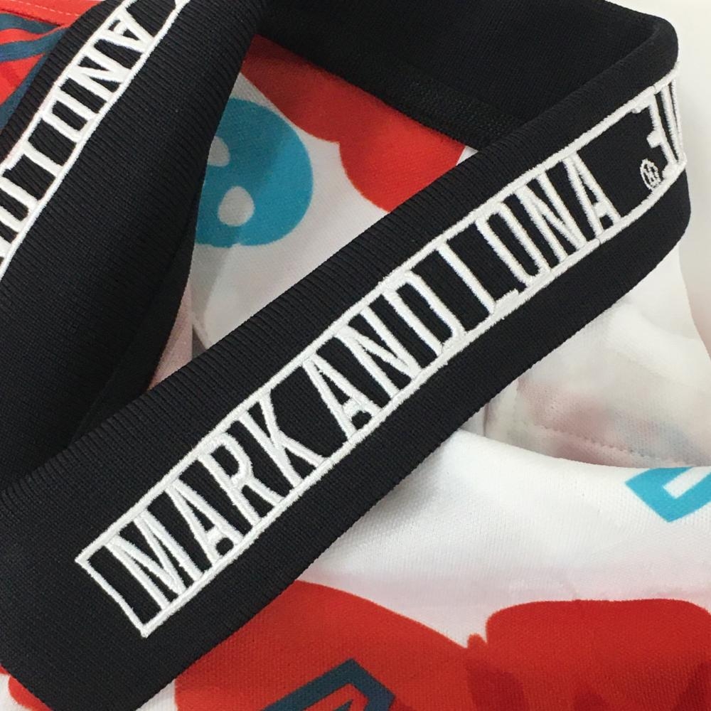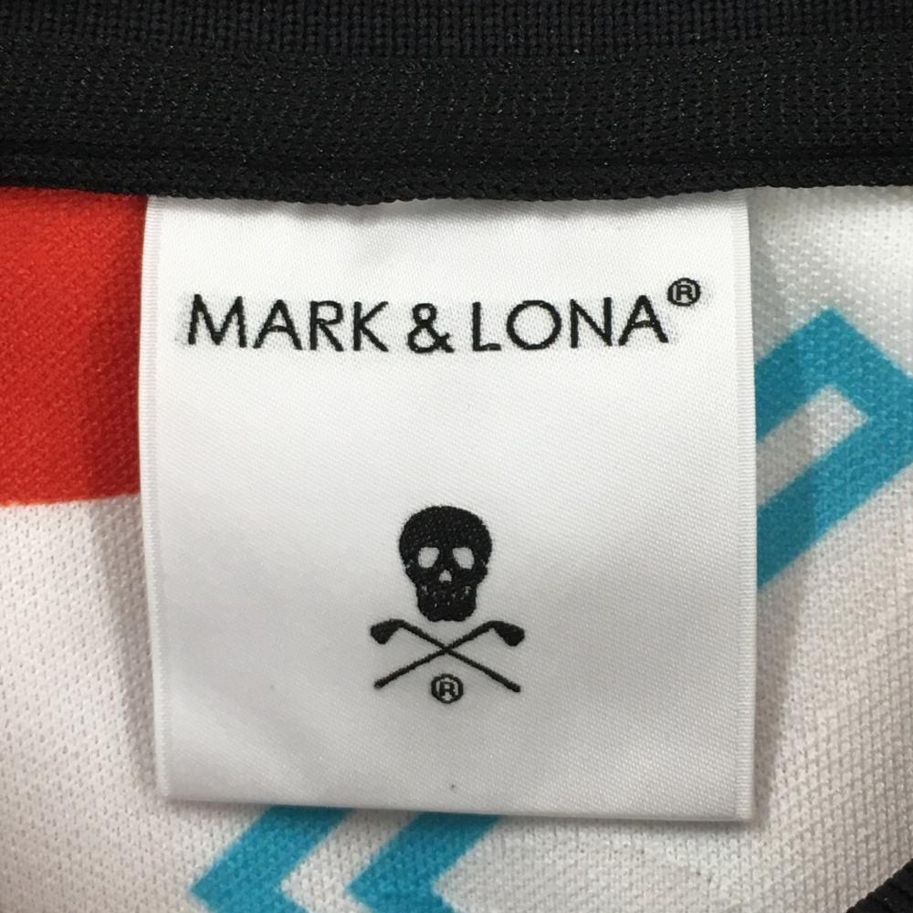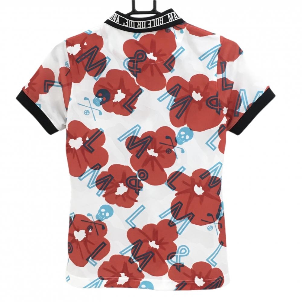 【美品】マークアンドロナ 半袖ポロシャツ 白×レッド 総柄 スカル レディース 38(M) ゴルフウェア MARK&LONA