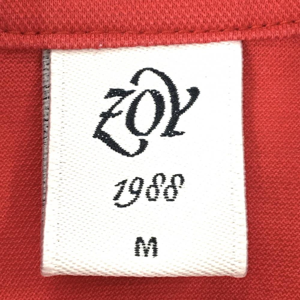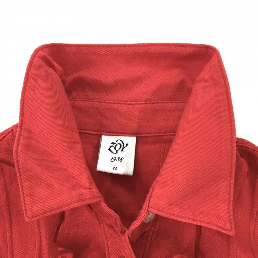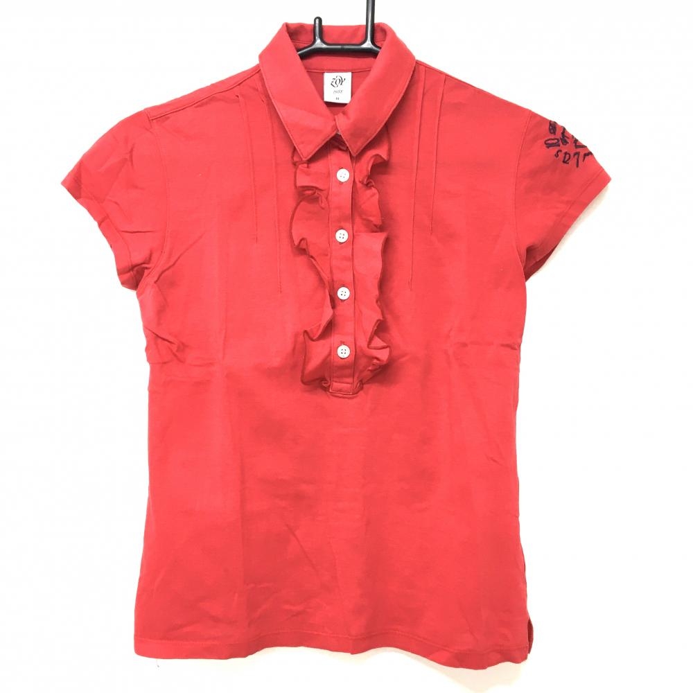 【美品】ゾーイ 半袖ポロシャツ レッド 前立てフリル 袖ロゴ刺しゅう レディース M ゴルフウェア ZOY
