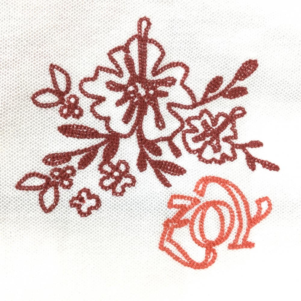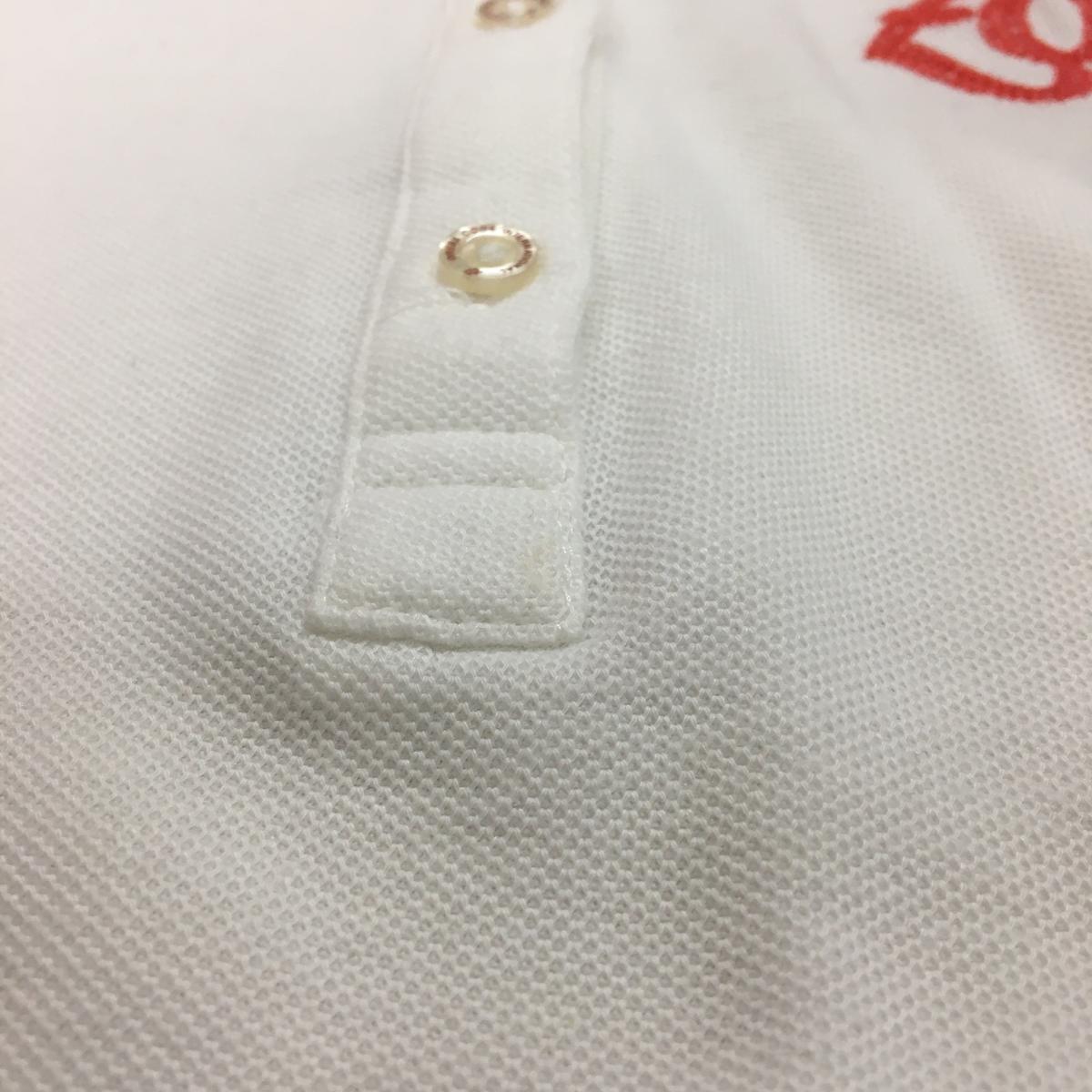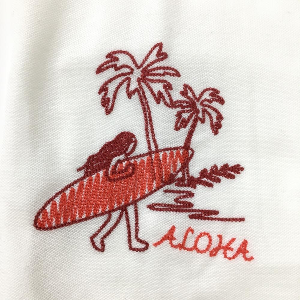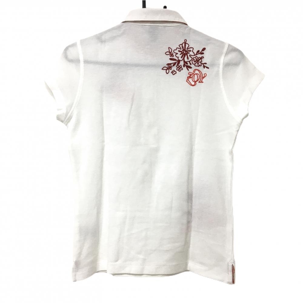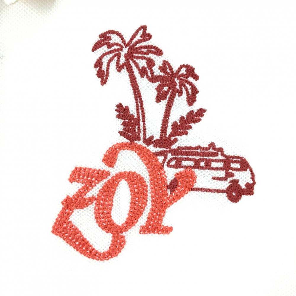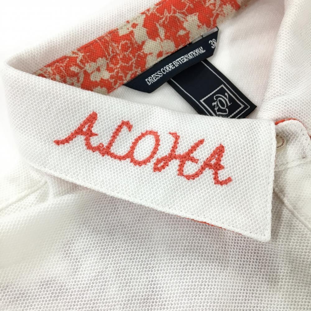 【超美品】ゾーイ 半袖ポロシャツ 白×オレンジ 襟裏柄 ALOHA 刺しゅう多数 レディース 38 ゴルフウェア ZOY
