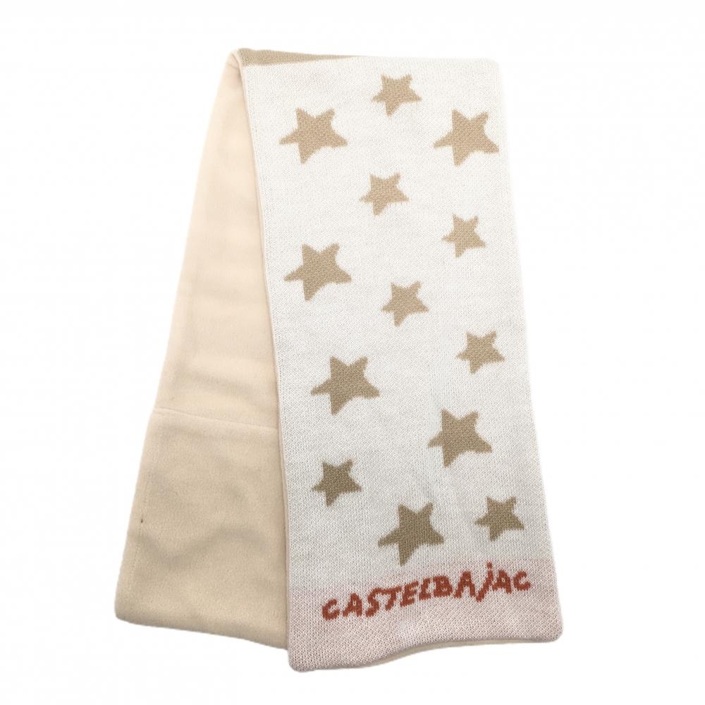 【新品】カステルバジャック ネックウォーマー ベージュ×白 ボーダー 星柄 裏フリース F ゴルフウェア CASTELBAJAC