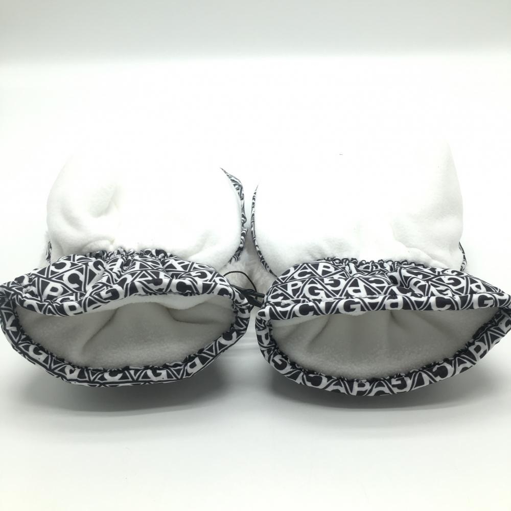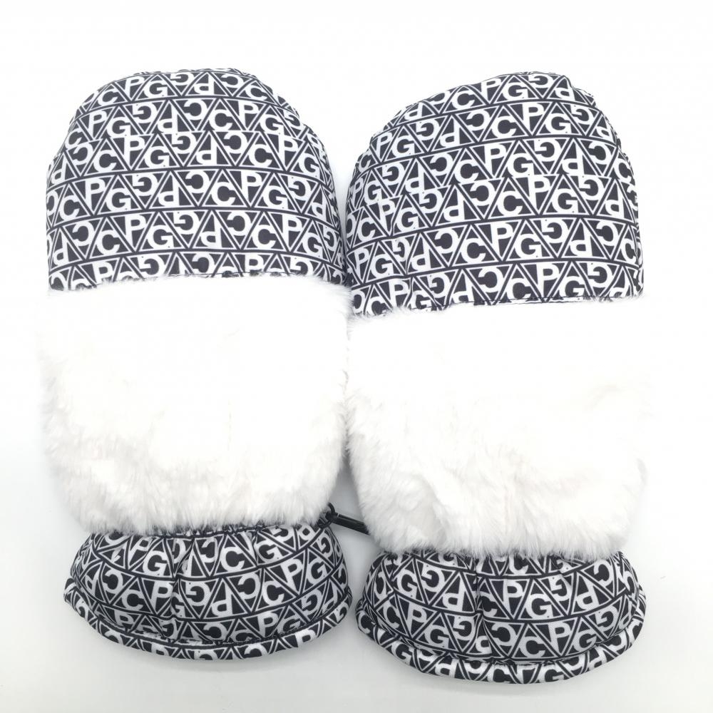 【新品】シーピージー ミトン 白×黒 ロゴ総柄 一部ファー 内側フリース レディース ゴルフウェア CPG
